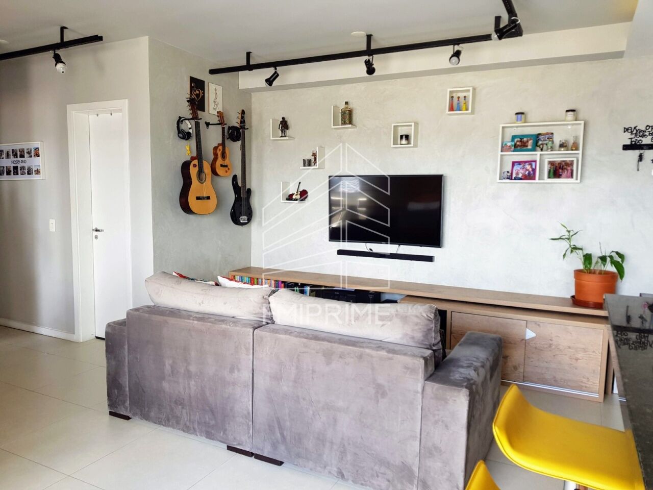 A ampla sala de estar, revestida com piso porcelanato, se conecta a uma varanda encantadora, que oferece uma vista única. O piso lamnado nos dormitórios adiciona um toque de aconchego ao ambiente.