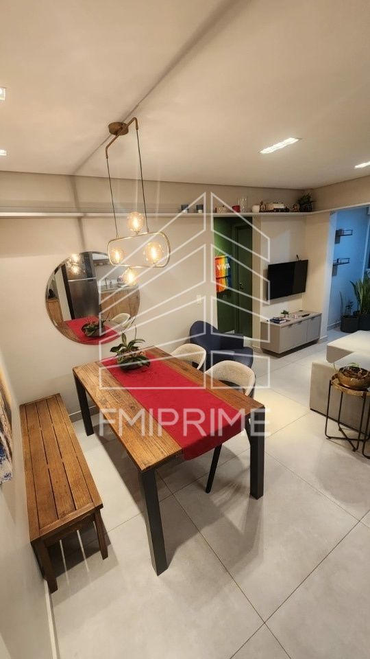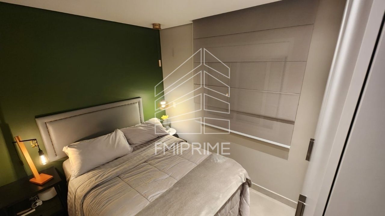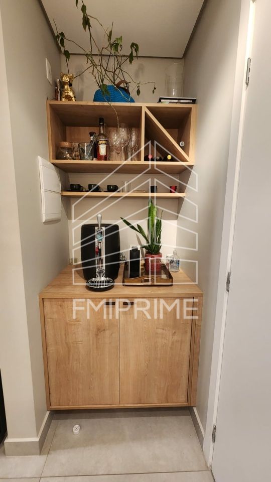 Distribuídos em sala para 2 ambientes integrado a varanda, cozinha totalmente planejada integrada com a área de serviço, 2 quartos planejados com ar acondicionado LG no quarto principal, persianas, fino acabamento, iluminação Yamamura, 1 vaga demarcada.