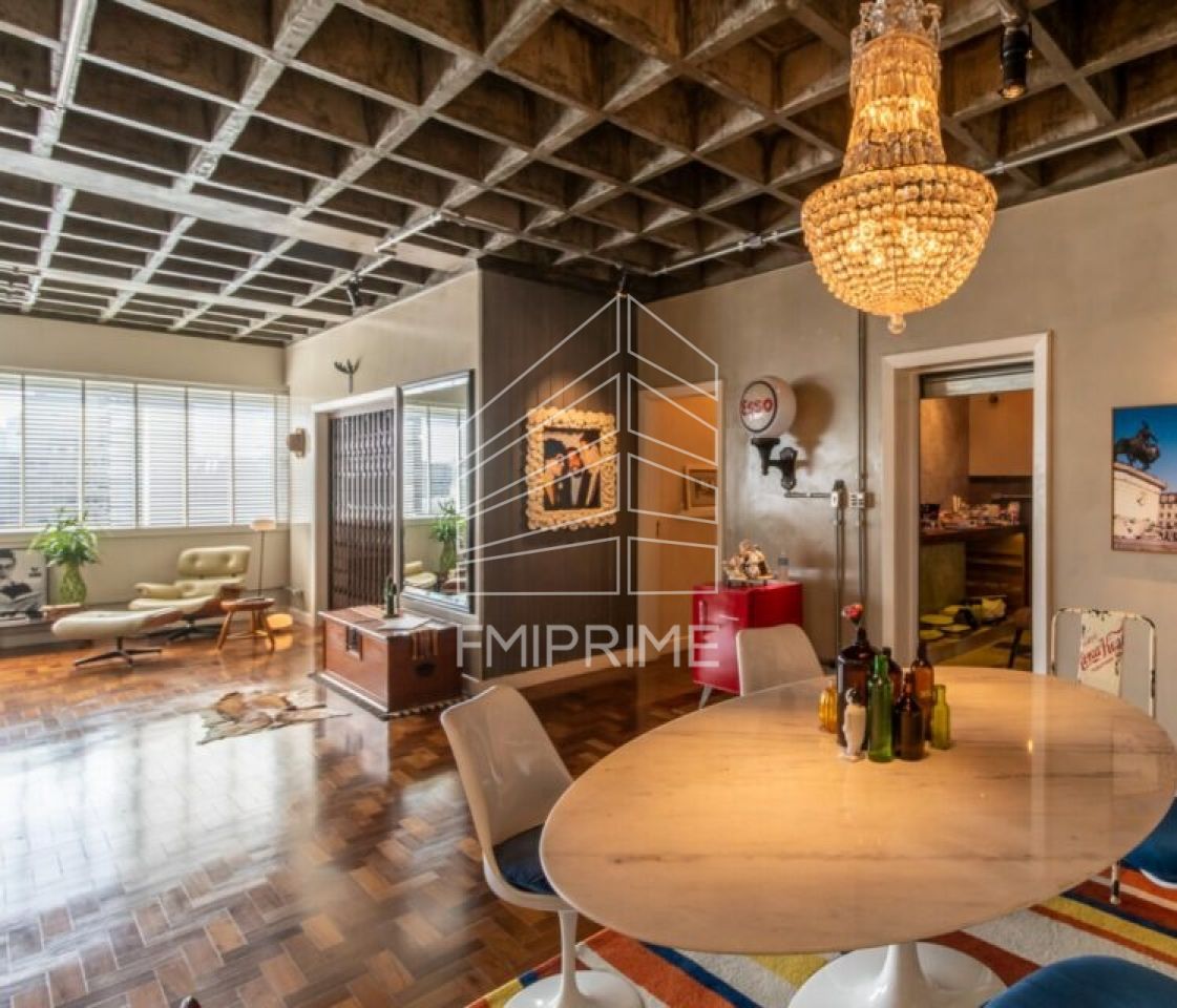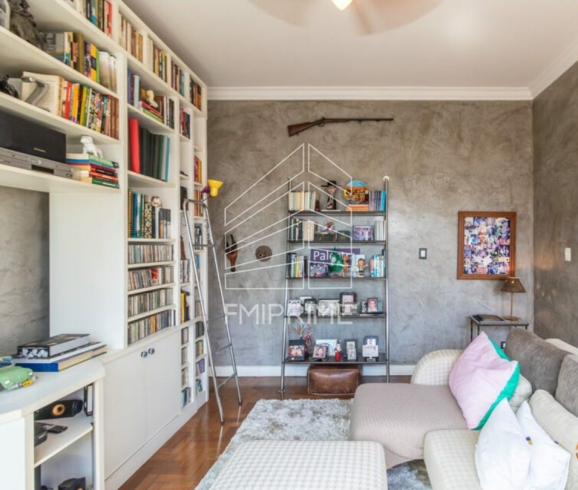 O apartamento originalmente possuía 3 dormitórios, mas um deles foi aberto para a sala, se transformando na sala de TV, que é isolada do restante do estar por uma linda porta pantográfica antiga.