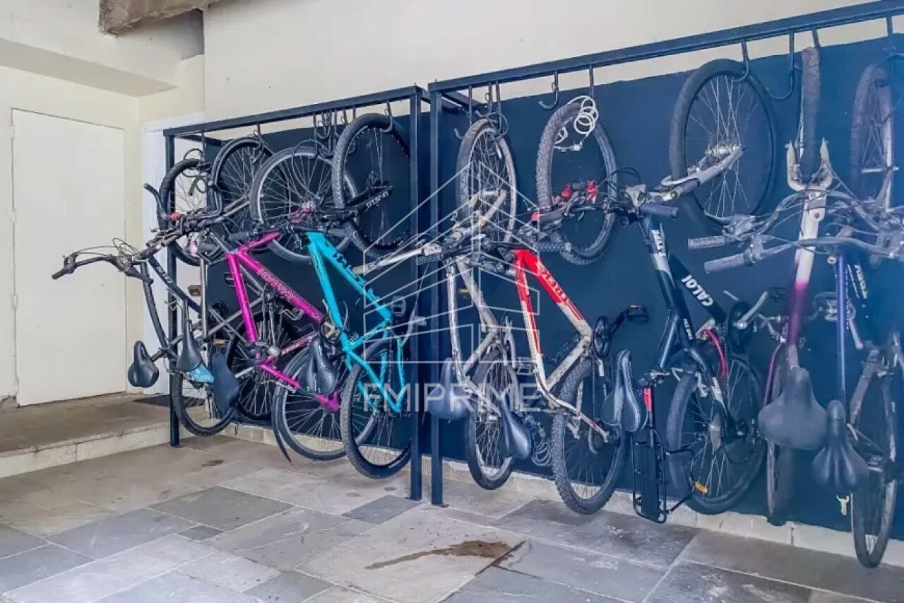 O condomínio oferece portaria 24 horas, elevador e bicicletário.