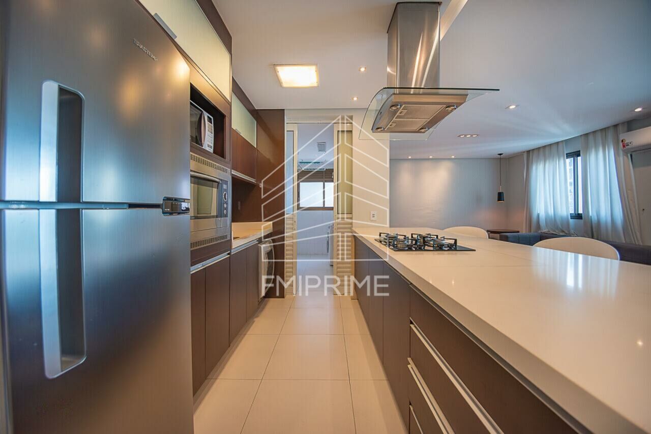 Os materiais foram escolhidos com foco em durabilidade e desempenho: piso de madeira nas áreas social e íntima, e porcelanato técnico na cozinha, banheiros e área de serviço. O imóvel conta ainda com dependência completa de serviço e duas vagas determinadas, atributos que agregam conveniência à rotina.