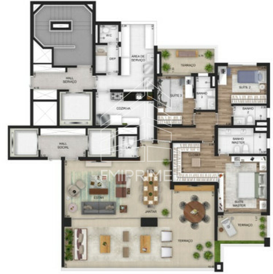 Apartamento com3 Dormitórios sendo 3 suítes, lavabo, Cozinha, Sala ampla iluminada, Varanda gourmet, Lavanderia e 3 vagas de garagem.