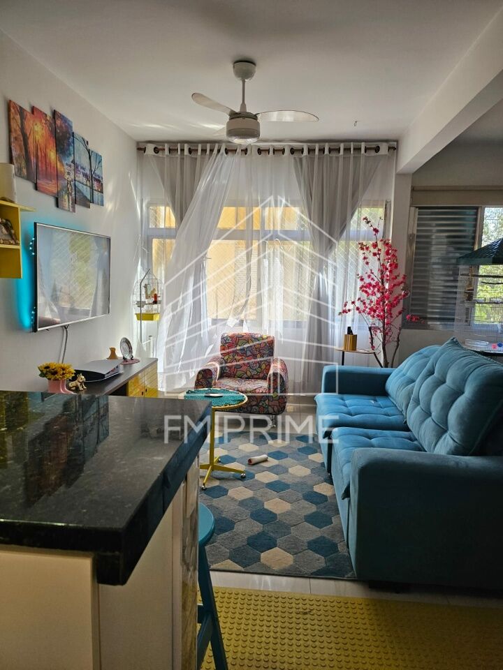 Lindo apartamento, todo reformado, com 2 dormitórios, sala e cozinha em conceito aberto, lavanderia. Piso porcelanato nas áreas frias e piso laminado nos quartos, móveis planejados na cozinha, lavanderia e um dos quartos.