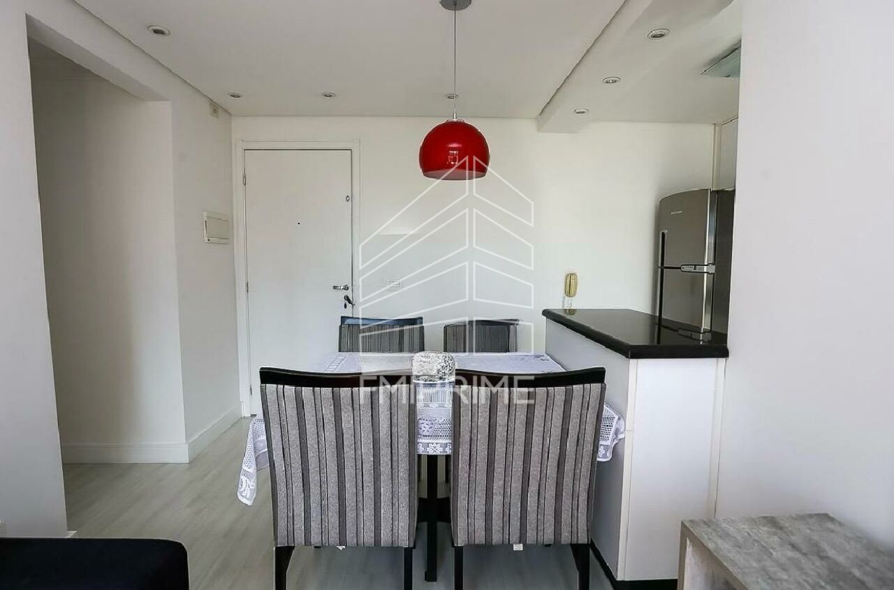Apartamento com armários planejados em todos os cômodos. A cozinha conta com cooktop, forno e bancada de granito preto. A sala possui painel para TV e cortina. No quarto principal, há armário embutido com espelho e painel para TV. O segundo quarto dispõe de mesa para escritório com armário e três gavetas, além de armário embutido com espelho e sapateira. Lazer completo no condomínio.