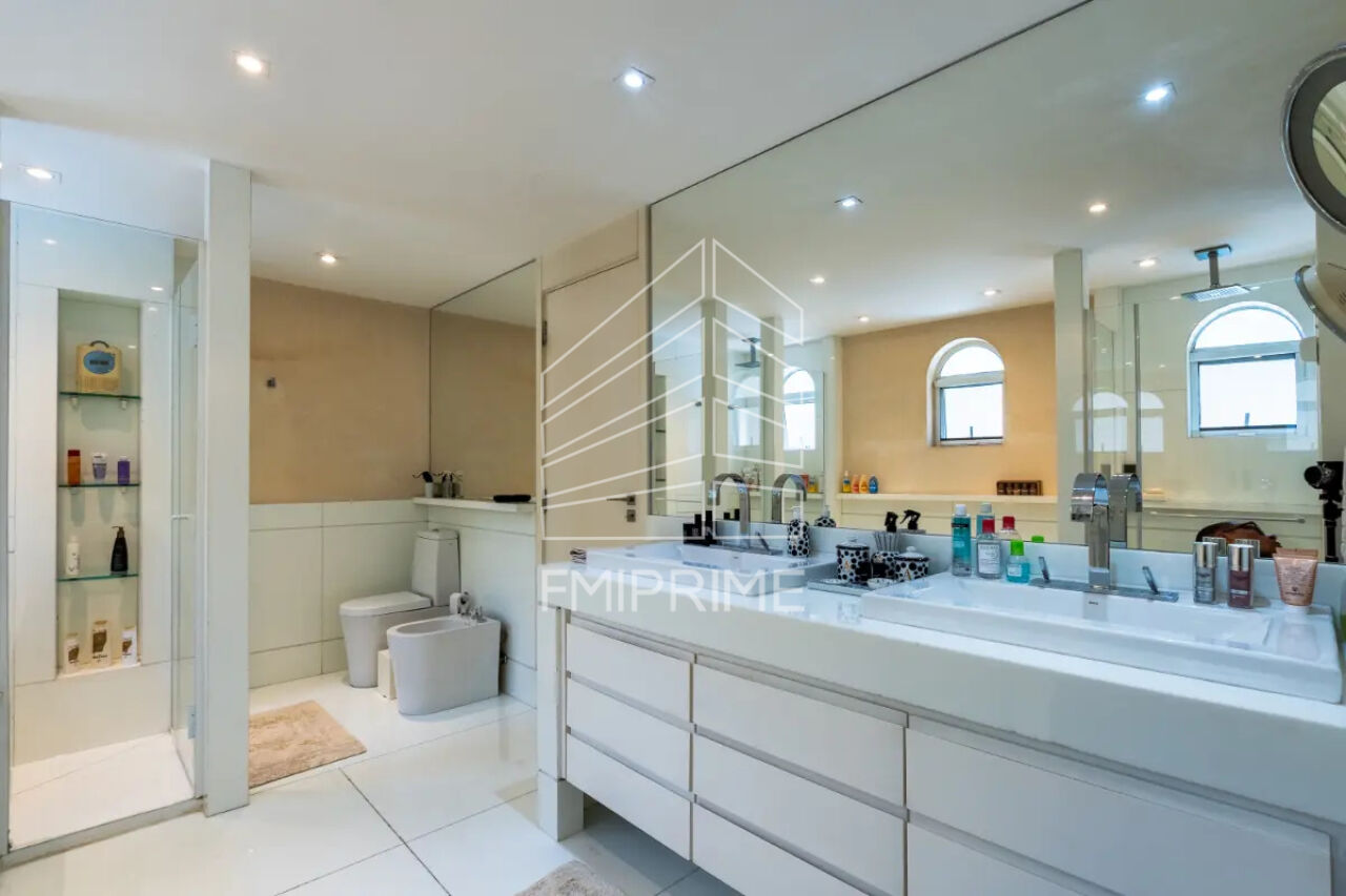 A área íntima foi cuidadosamente planejada para proporcionar máximo conforto e privacidade, com três suítes impecáveis, cada uma com excelente iluminação natural e acabamentos sofisticados. A suíte master é um verdadeiro refúgio, destacando-se por um amplo closet, quase do tamanho do quarto, e um banheiro elegante, equipado com banheira e duas duchas independentes, oferecendo um ambiente de puro relaxamento.