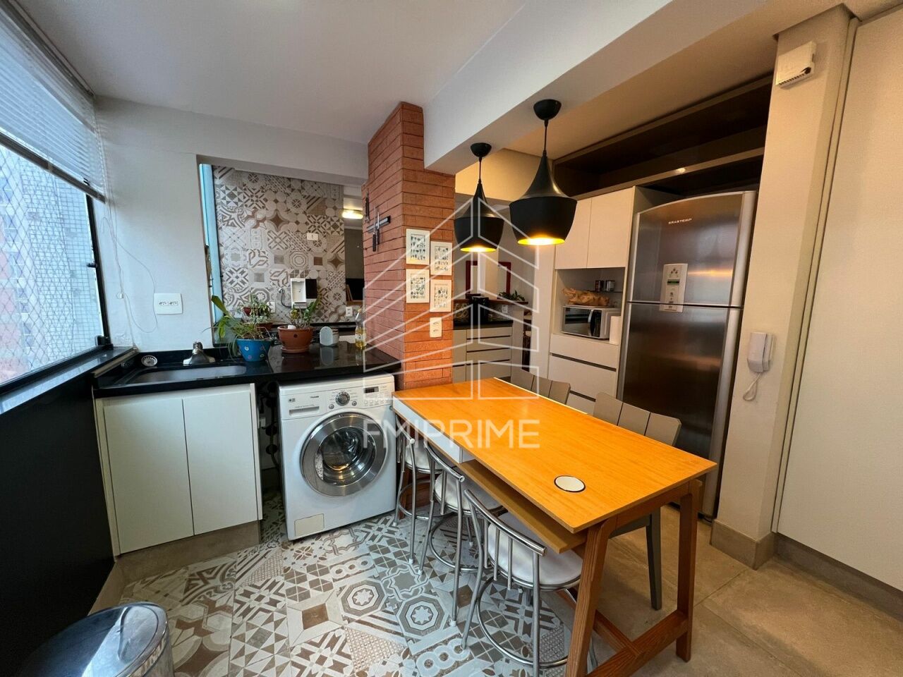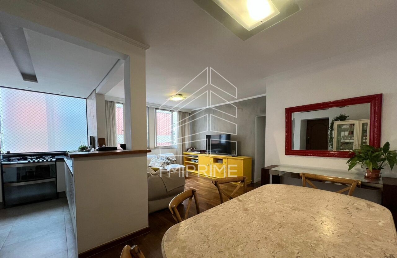 O apartamento possui 100m² de área privativa, com 3 quartos, 2 banheiros, sala para 2 ambientes, cozinha planejada e área de serviço, 1 vaga de garagem livre.