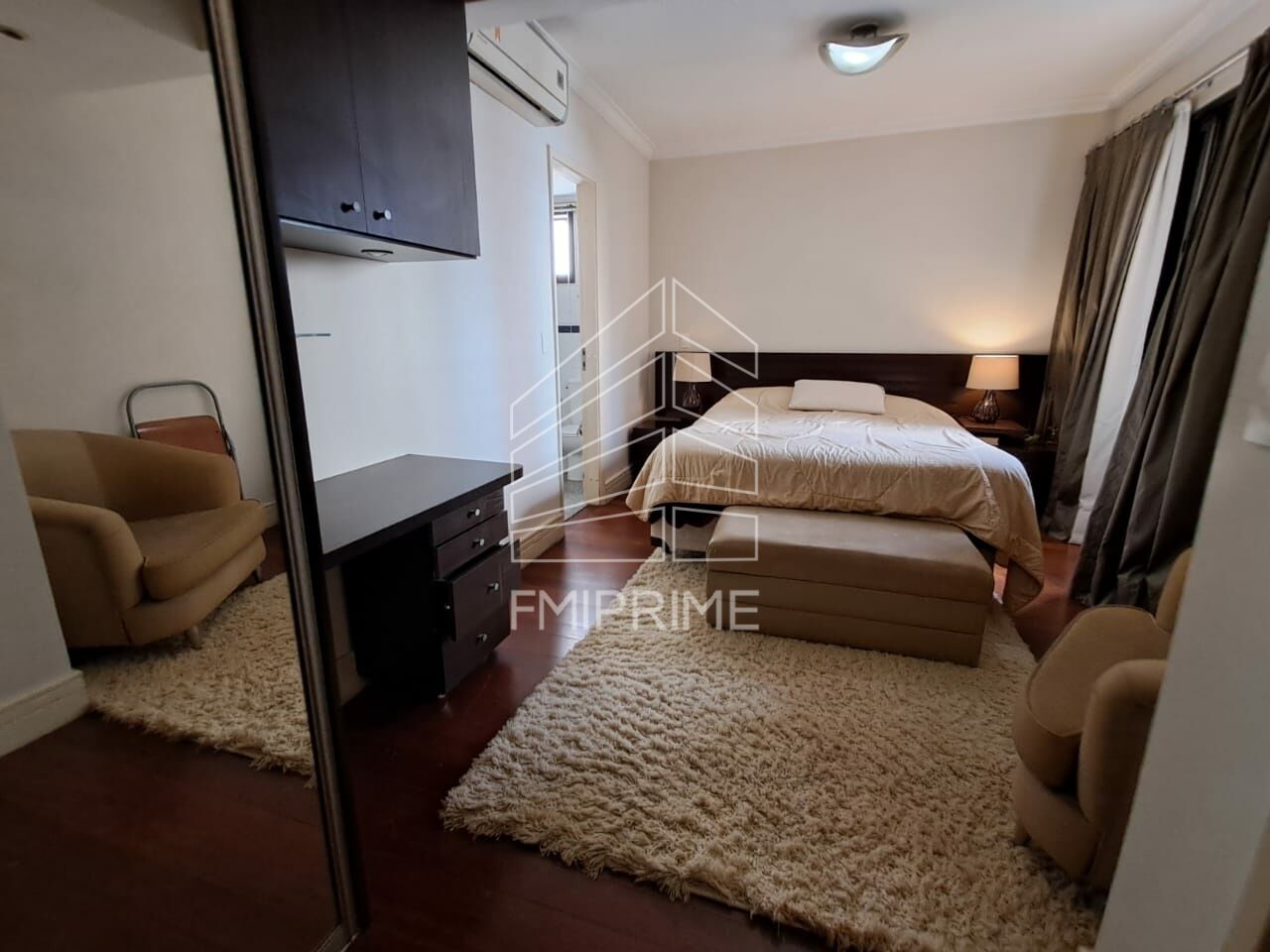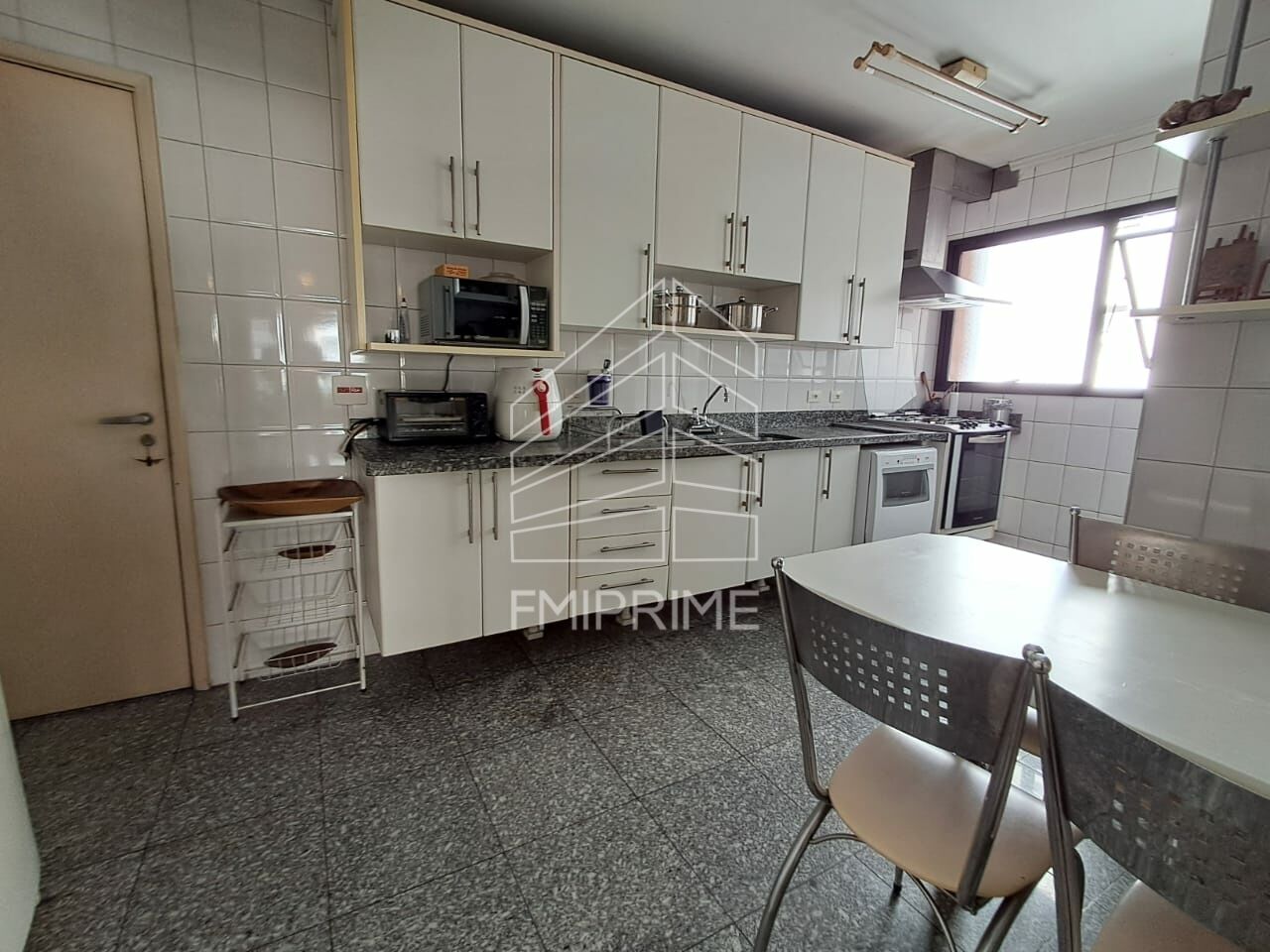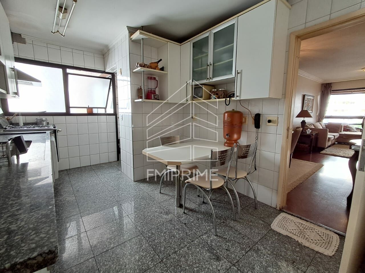 São 3 dormitórios, sendo 1 suíte, todos equipados com armários embutidos, que proporcionam praticidade e organização. A suíte conta com ar condicionado. A cozinha planejada, com móveis de qualidade, integra-se à área de serviço, que conta ainda com dependência completa de empregada. O apartamento dispõe de 2 vagas de garagem, unindo comodidade e segurança.