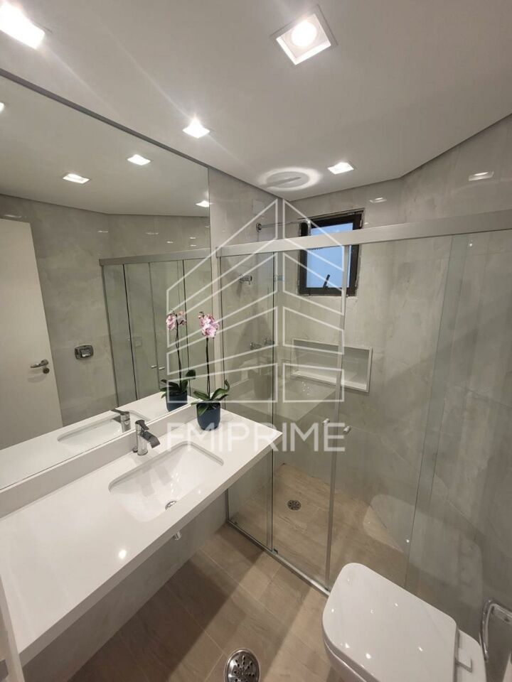 A área íntima dispõe de quatro dormitórios, sendo uma suíte, além de banheiro social e lavabo, este configurado como banheiro completo, trazendo mais versatilidade ao uso cotidiano e ao receber convidados. A suíte, assim como a sala e o corredor, conta com iluminação atualizada em sanca de gesso, reforçando o cuidado com os detalhes do projeto. Os banheiros foram atualizados e contam com box e espelhos novos, compondo ambientes modernos e funcionais.