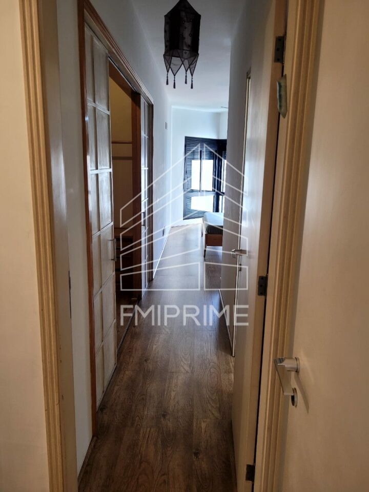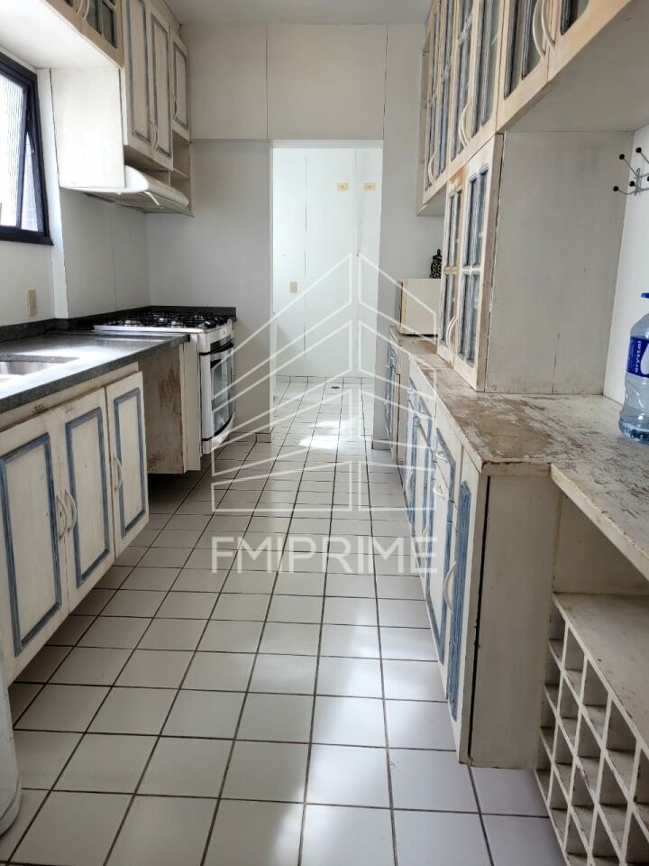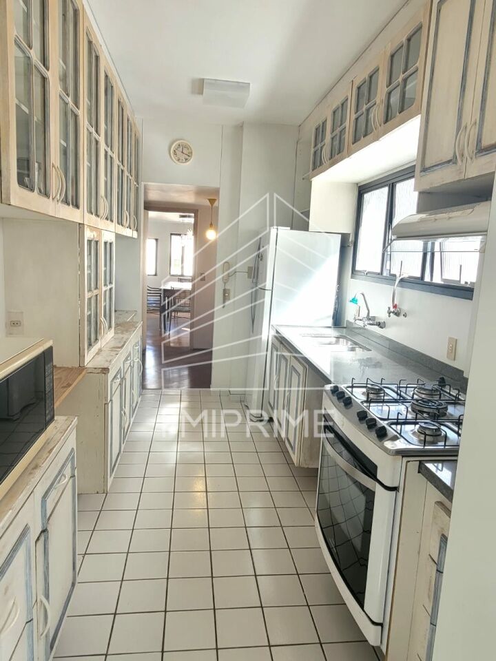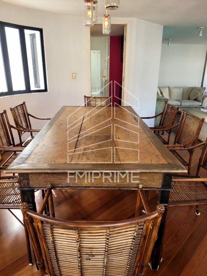 Apartamento com 160m², sala para 4 ambientes com lareira, ampla varanda, cozinha planejada com fogão embutido, área de serviço com quarto e banheiro, 3 suítes, 4 vagas de garagem e depósito.