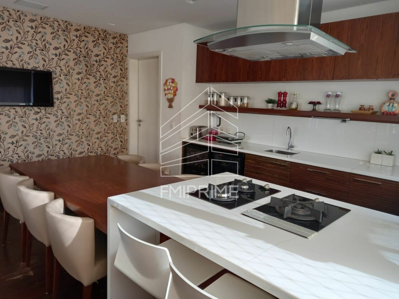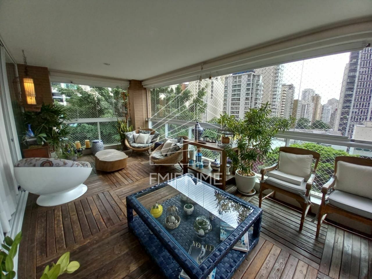 A cozinha gourmet planejada integra-se harmoniosamente à sala de jantar, criando o cenário ideal para receber com charme e funcionalidade. Há também uma cozinha ampla com despensa, copa, lavabo e dependências completas, todas com ar-condicionado, assegurando praticidade no dia a dia. A varanda apresenta piso em placas removíveis de dormentes, um detalhe que imprime personalidade ao projeto. O imóvel dispõe de cinco vagas de garagem demarcadas e um grande depósito privativo no subsolo, diferencial que reforça a exclusividade da unidade.