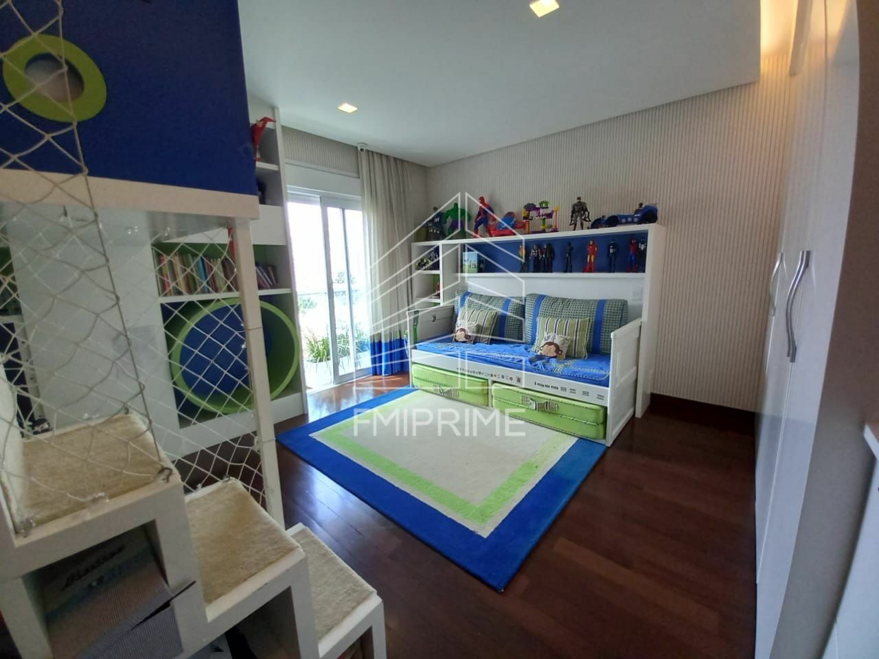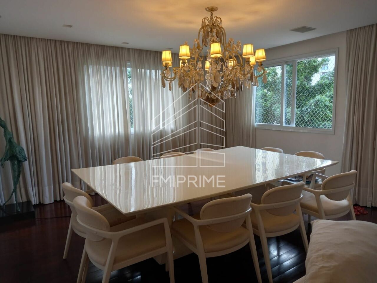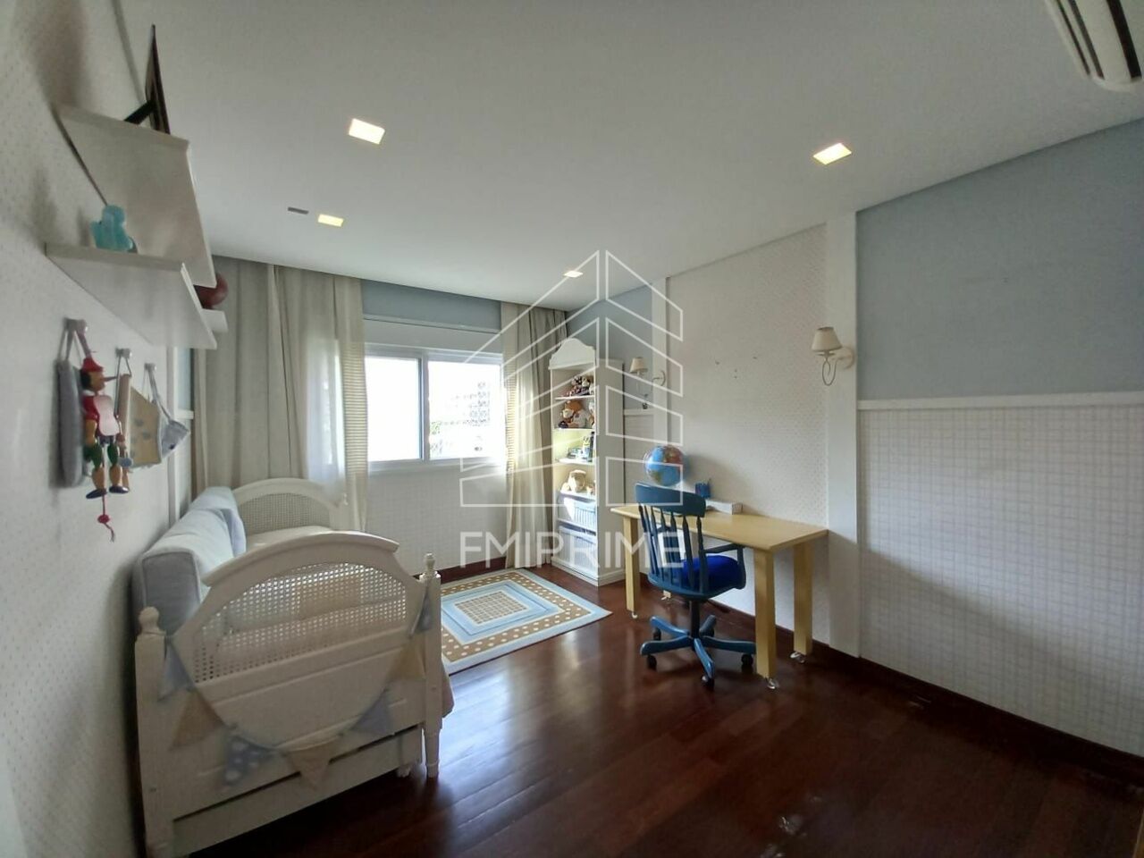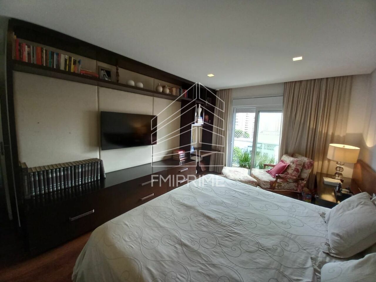 A área íntima oferece três suítes, todas com ar-condicionado e excelentes armários planejados. A suíte master se destaca pelo closet, banheiro com hidromassagem e pias duplas, compondo um refúgio privativo marcado por sofisticação e bem-estar. O imóvel conta ainda com soluções que elevam o padrão de conforto, como vidros antirruído, portas, janelas e venezianas automatizadas, além de sistema de automação de iluminação nas salas e dormitórios, incluindo blackout automatizado na sala de televisão e persianas automatizadas na sala gourmet.
