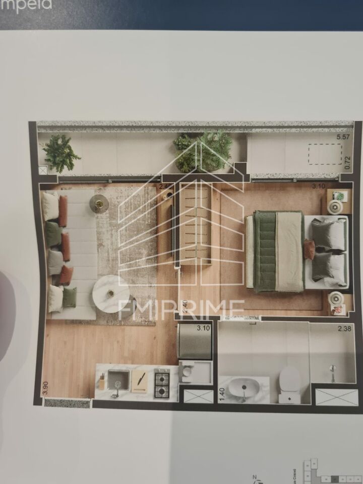 Studio com 29m² de área privativa, layout moderno com living, quarto e cozinha integrados, varanda e banheiro social. Unidade no contrapiso, pronta para você personalizar do seu jeito.