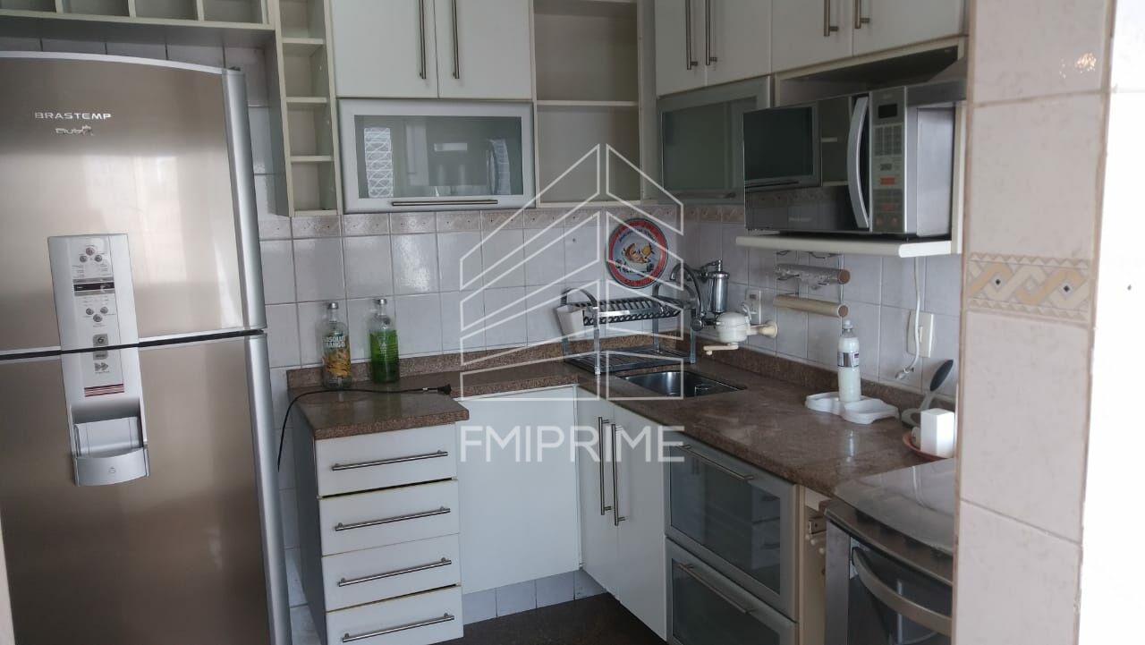 Apto. amplo de 82 m2 com dois dormitórios , sendo uma suíte e o segundo dormitório com sacada; sala com varanda em três ambientes: sala de estar, jantar e sala de TV (terceiro dormitório foi aberto ampliando a sala); 2 banheiros; armários planejados nos dormitórios e cozinha; 2 vagas de garagem cobertas.