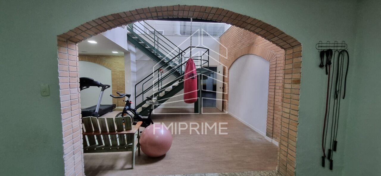 A área da academia apresenta uma variedade de equipamentos para treino funcional, de força e cardio: rack multifuncional com estação Smith, banco de supino regulável, halteres, barra olímpica, anilhas, kettlebells, bola suíça, bola medicinal, bosu, mini trampolim, colchonetes, escada sueca (espaldar), TRX (faixas de suspensão), esteira, bicicleta elíptica, corda naval, disco de equilíbrio, wall balls, entre outros.