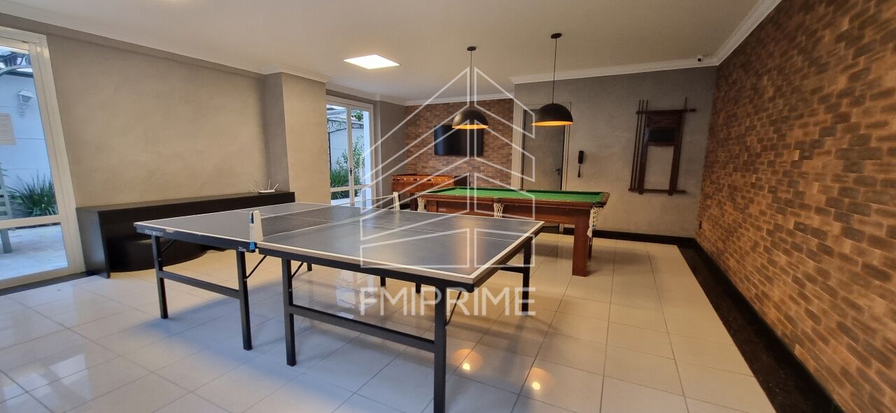 Ampla e moderna área social e espaço de lazer integrado com mesa de pingue-pongue e sinuca, com piso em porcelanato, iluminação embutida, corredores e portas largas e banheiro adaptado para pessoas com mobilidade reduzida, perfeita para eventos e encontros.