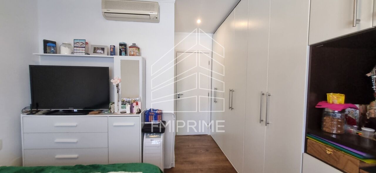 Suíte master climatizada por ar-condicionado split, com amplo armário planejado, abundante iluminação natural e banheiro privativo
