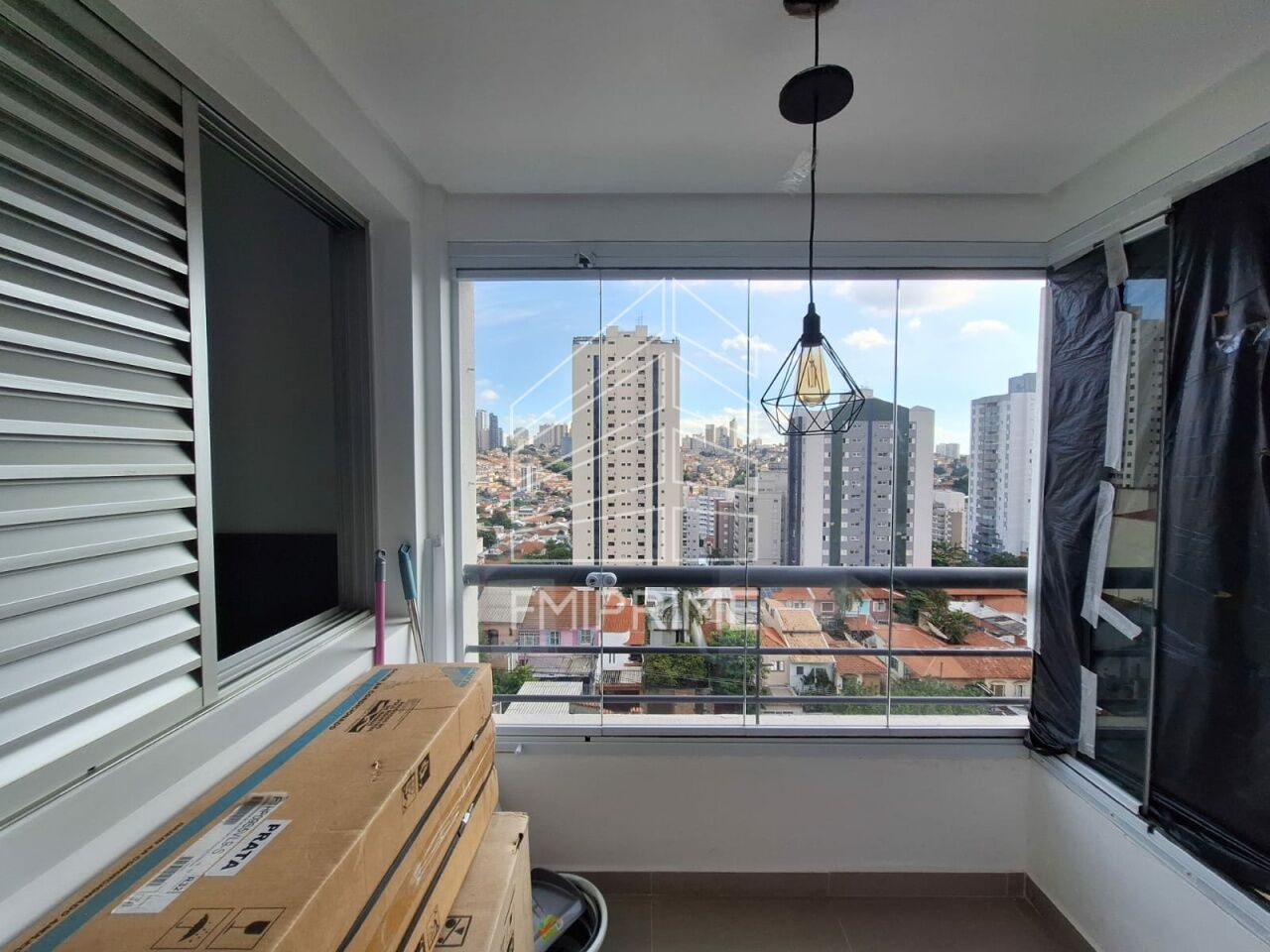 Sacada fechada com vidros.