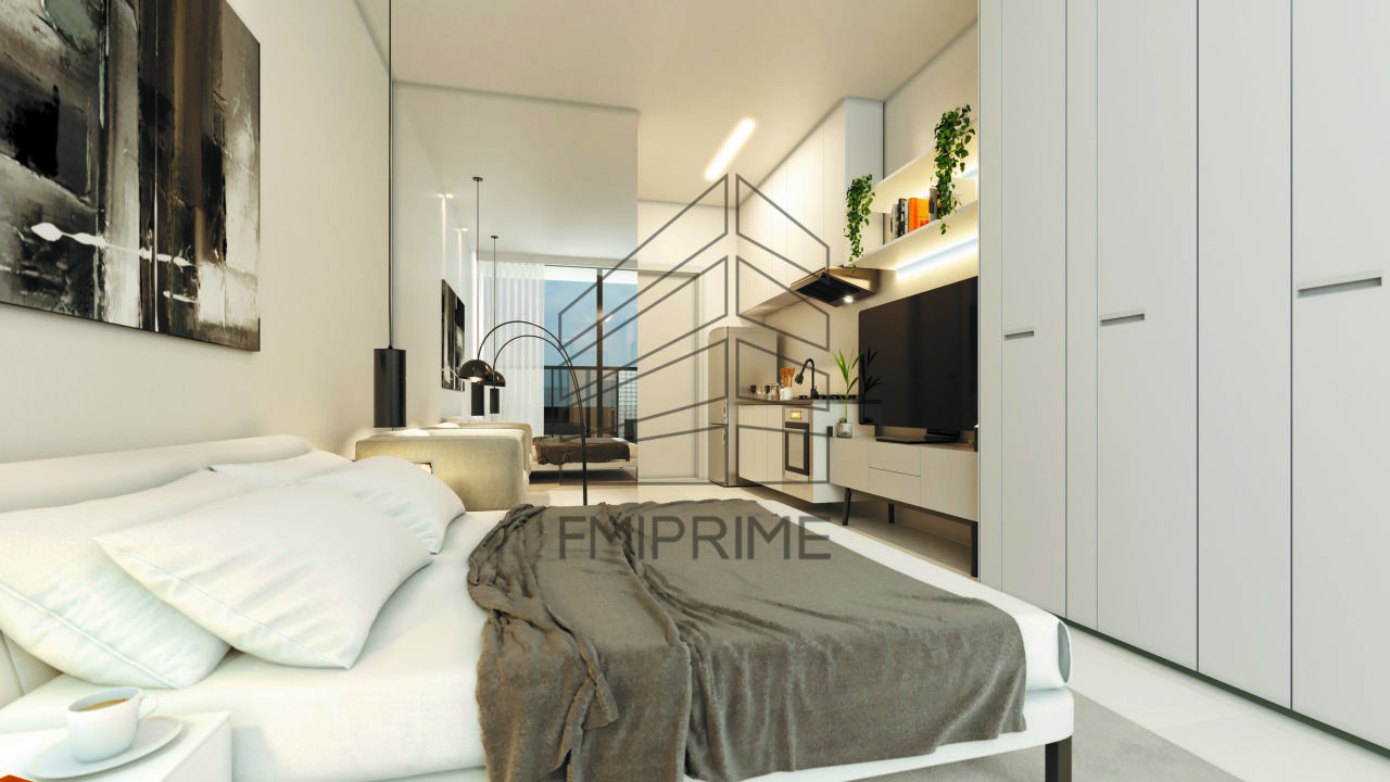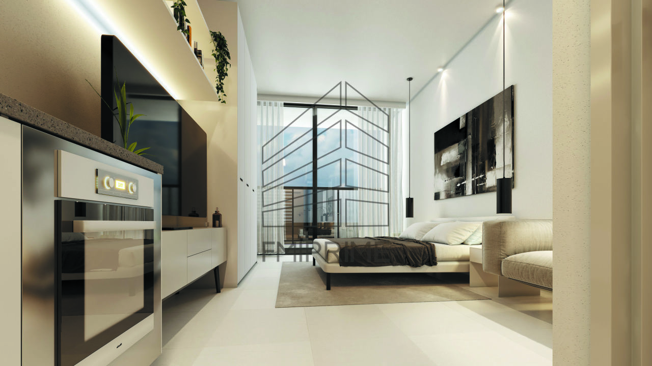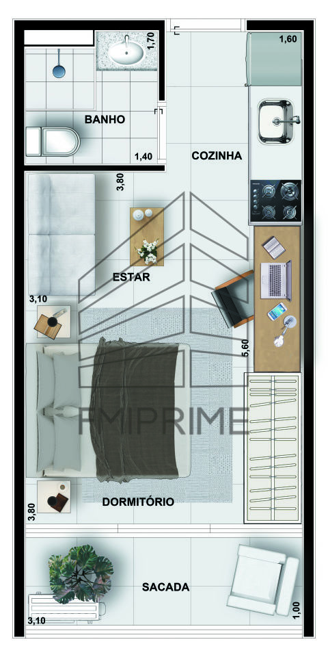 Apartamento Studio de 24 m², cozinha, living , banheiro e sacada.