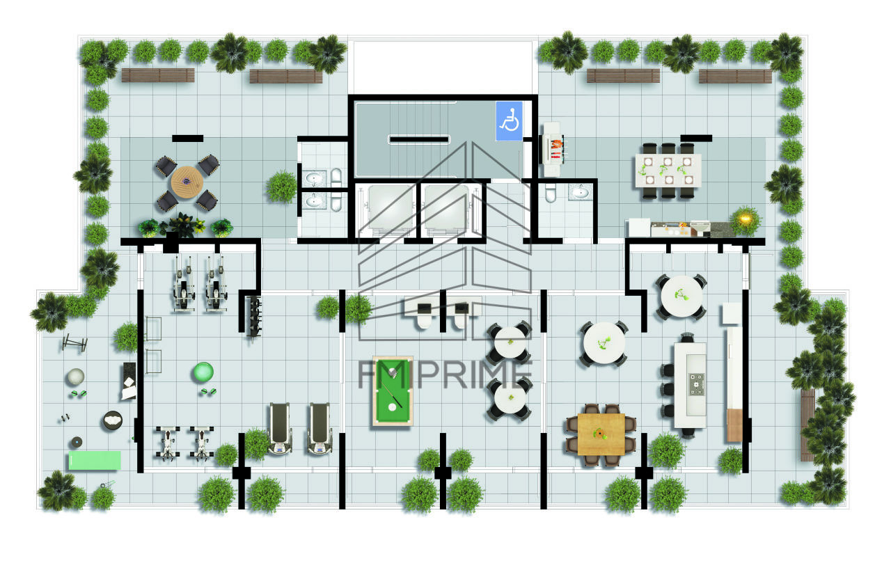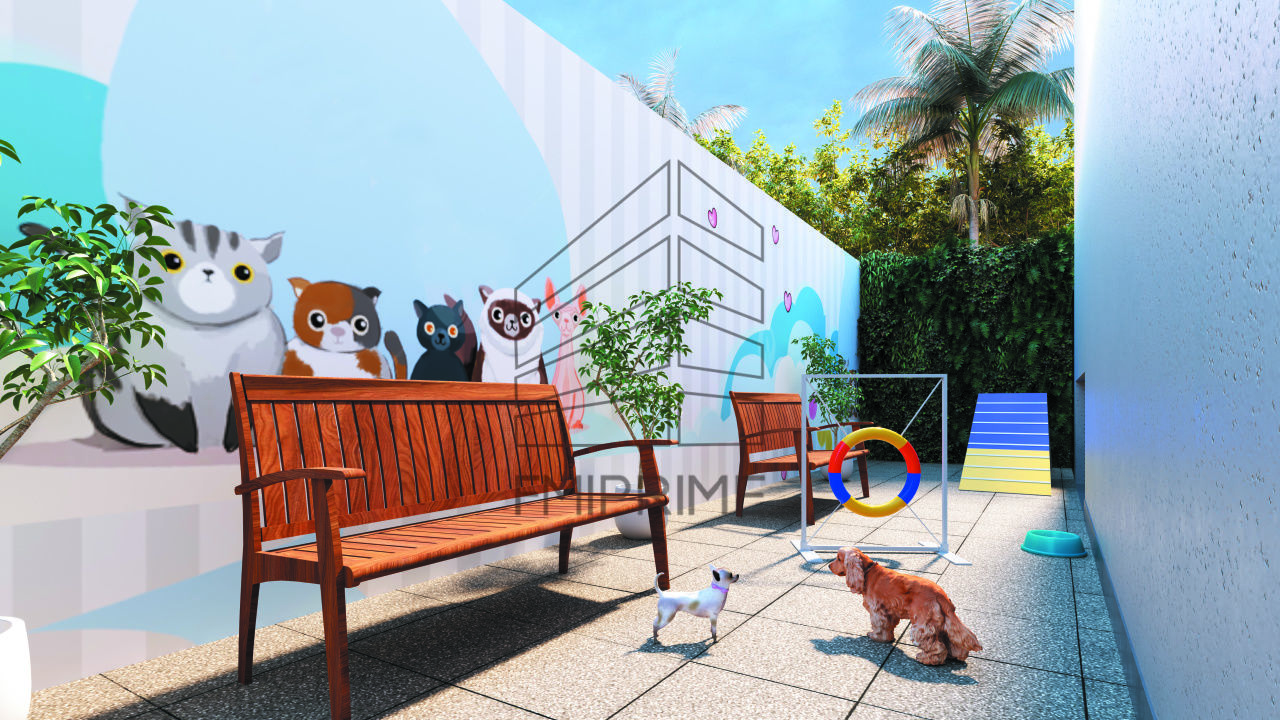 Depósitos de uso geral, bicicletário, lavanderia, recepção, estar/espera, coworking, salas de - ginástica, jogos, festas/gourmet, churrasqueira, terraços, estar externo, espaço pet, sauna seca, piscina raia & deck descoberto.
