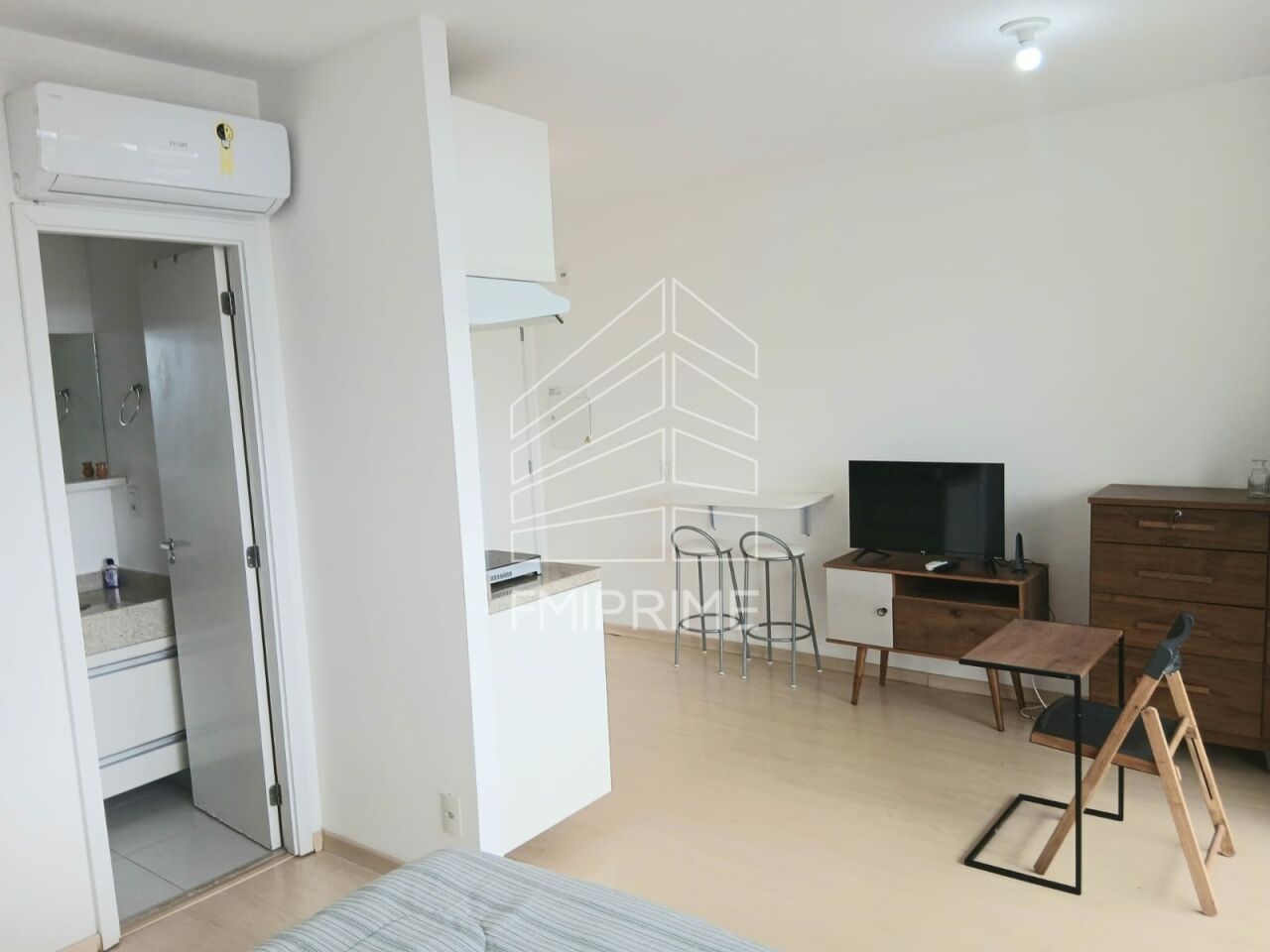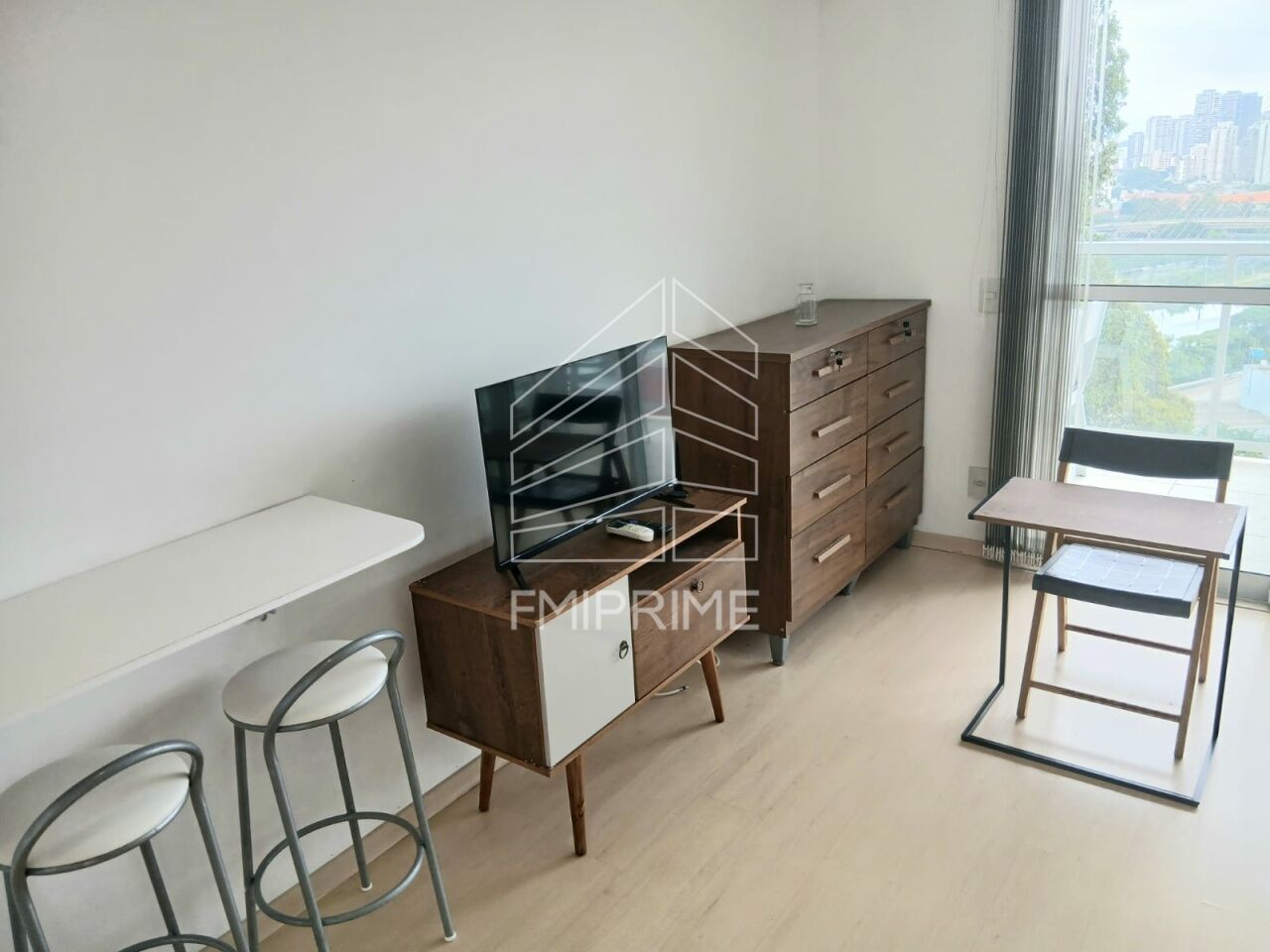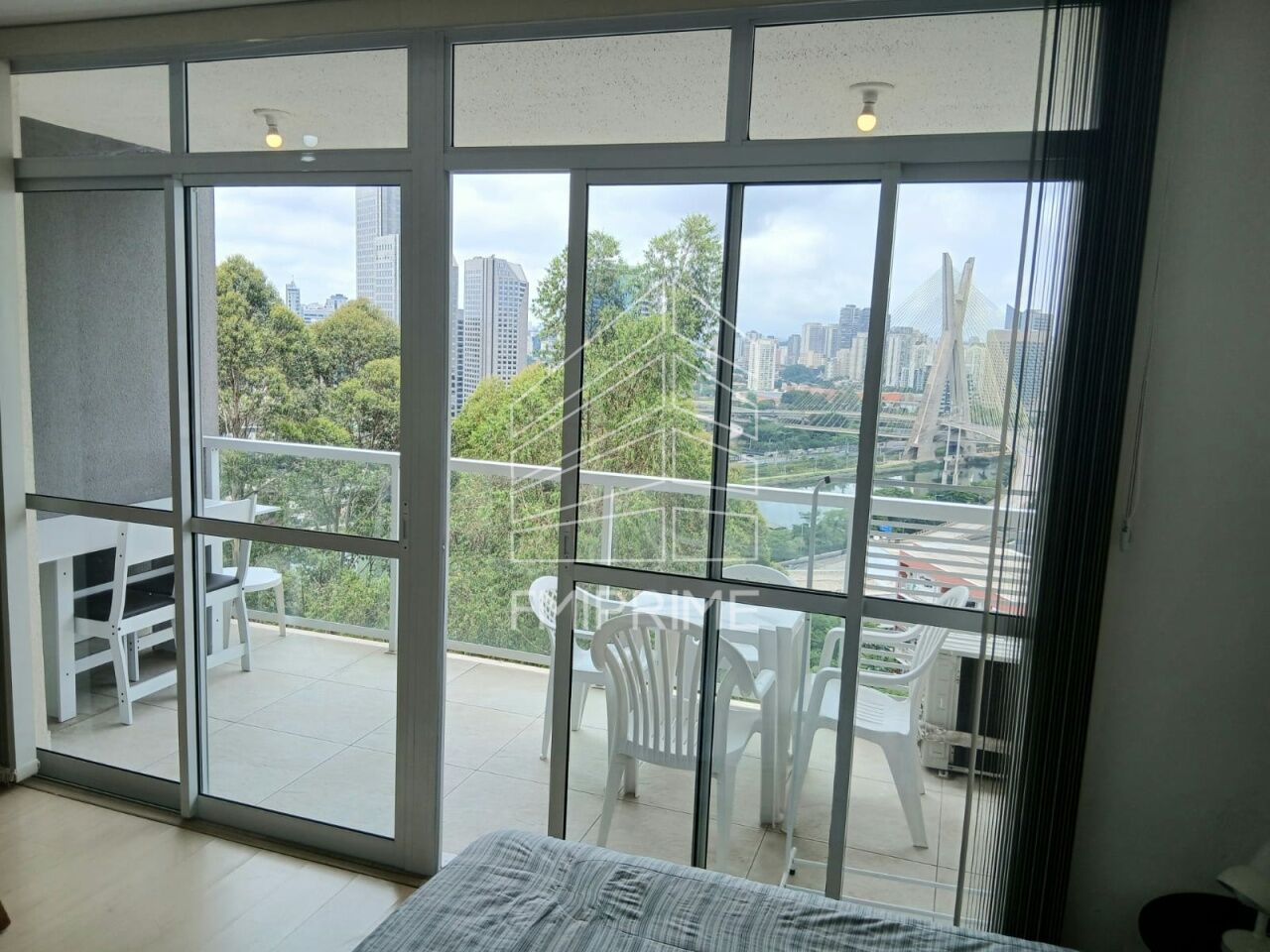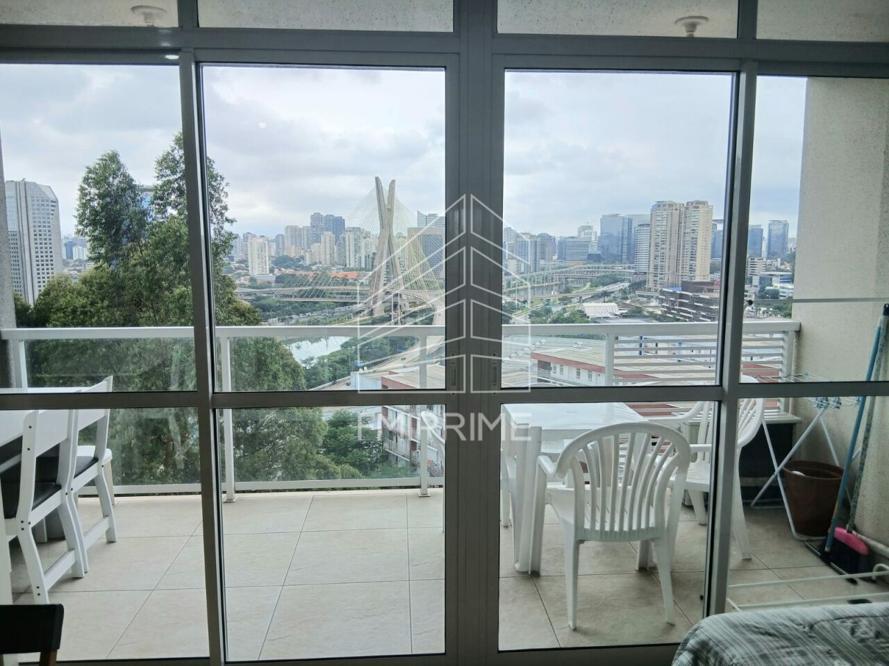Stúdio em andar alto com vista panorâmica para a Ponte Estaiada, mobiliado, com ar condicionado e 1 vaga de garagem.