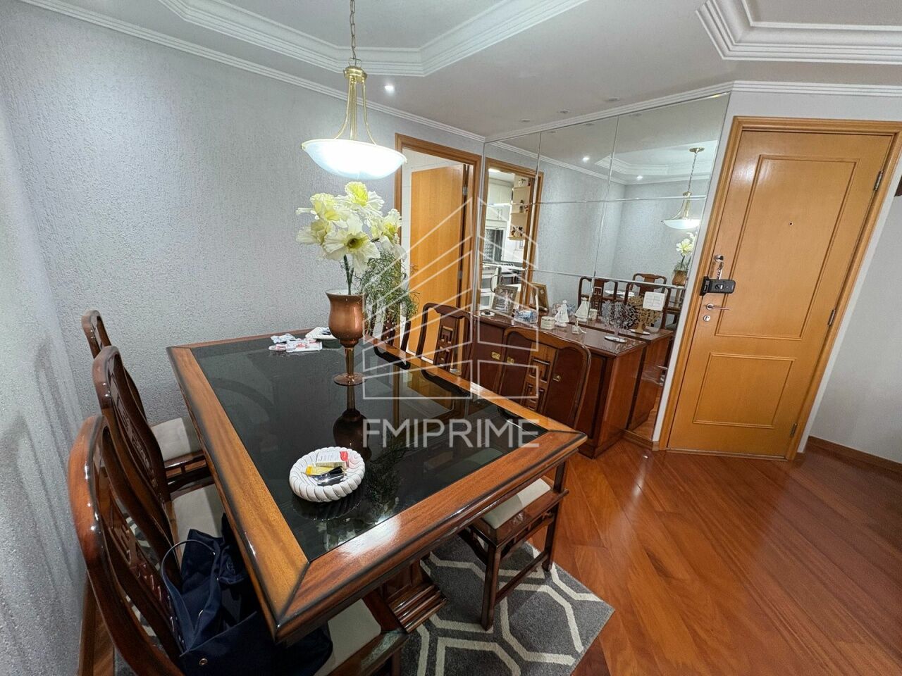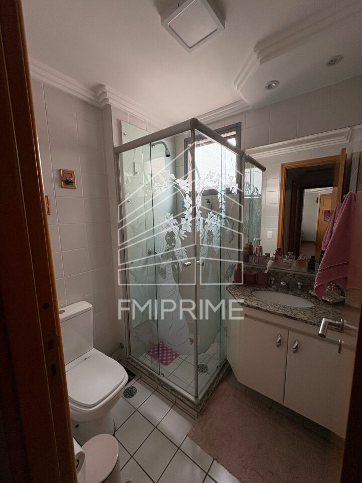 Apartamento com Sala para 2 ambientes, terraço, cozinha planejada, área de serviço, 3 quartos com armários planejados, 3 banheiros e 2 vagas de garagem.