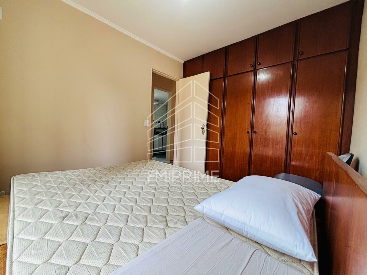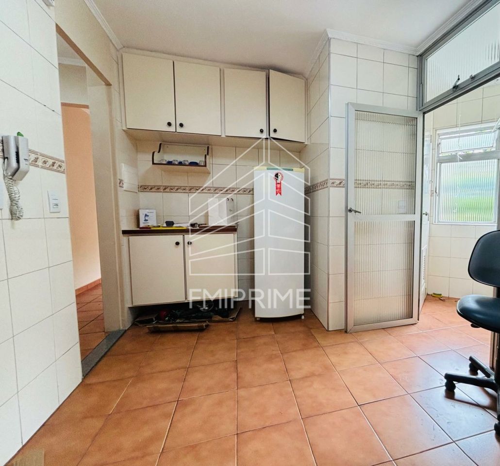 Apartamento 2 dormitórios com armários e camas, cozinha com armários e geladeira, sala para dois ambientes, banheiro com armários e box, área de serviço com máquina de lavar, wc de empregados e 1 vaga de garagem.