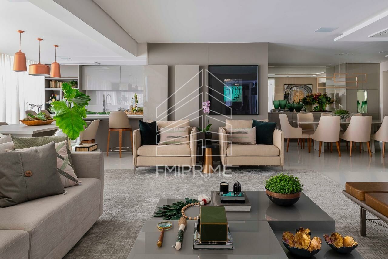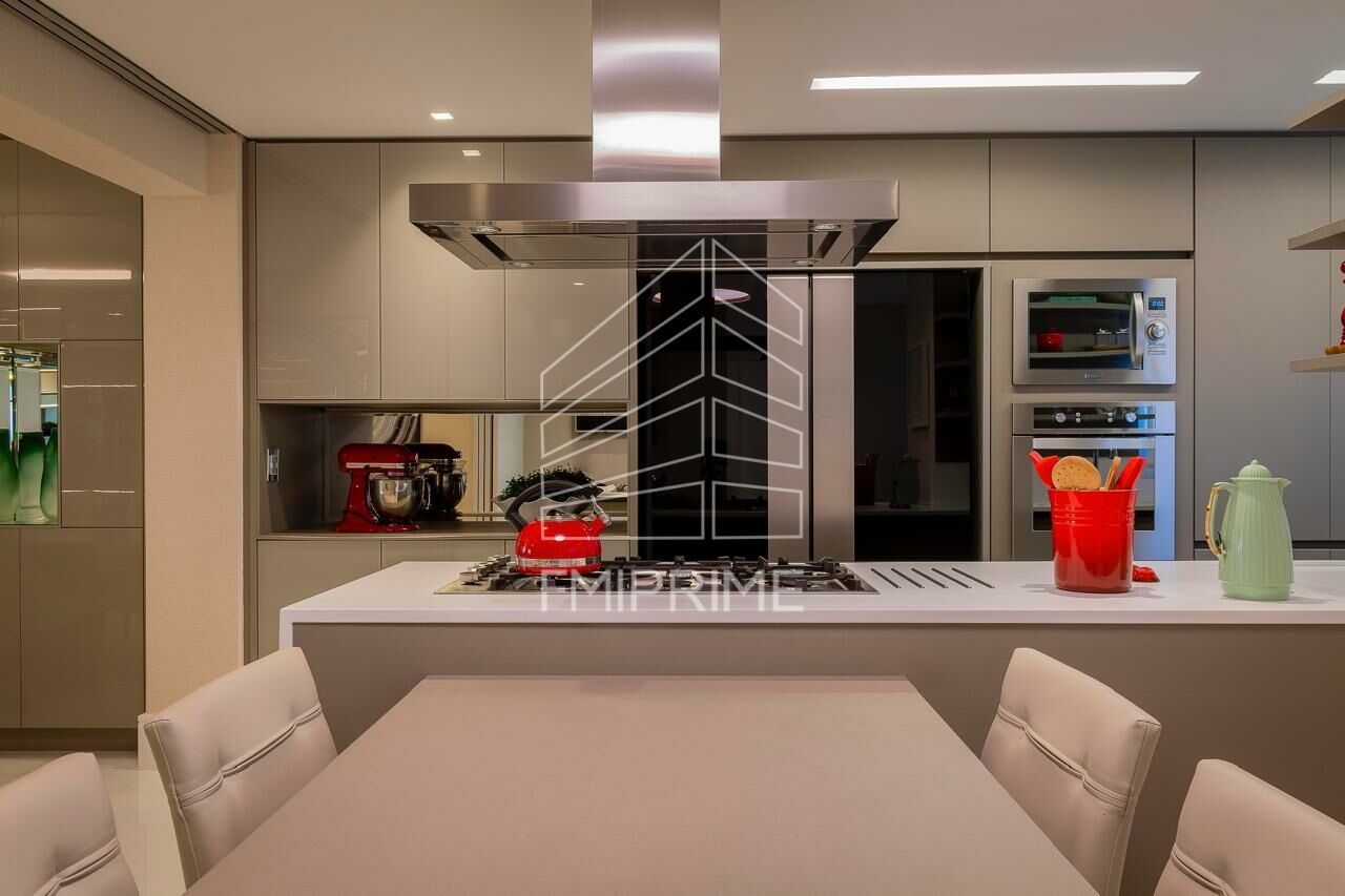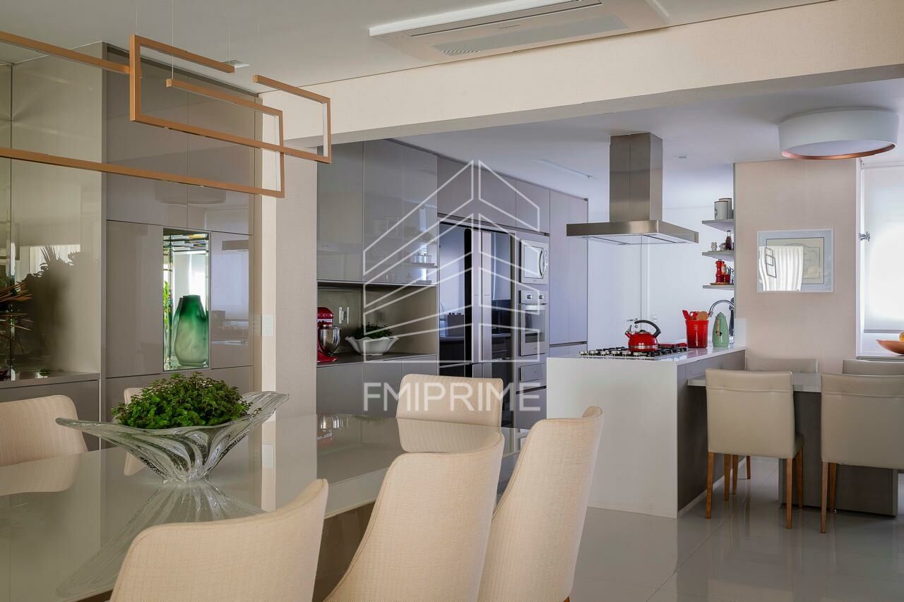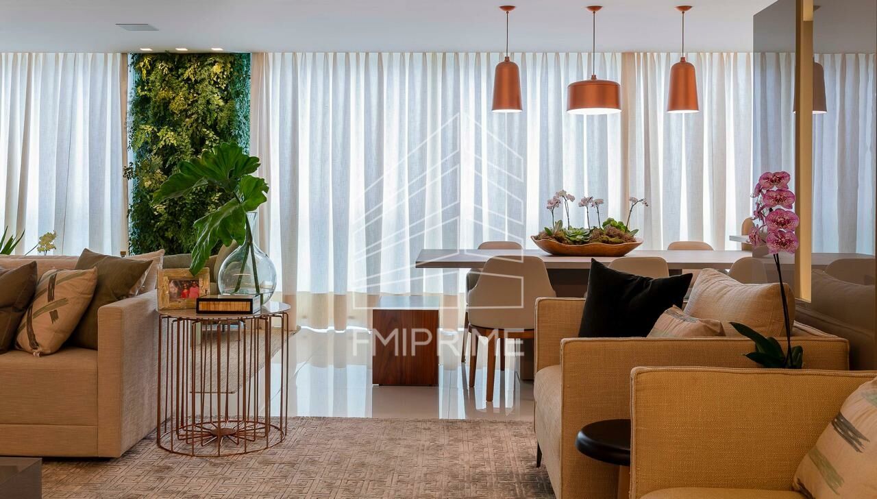 Apartamento de alto padrão no Jardim das Perdizes, com 4 suítes e 3 vagas de garagem, varanda gourmet fechada com vidros e ar condicionado em todos ambientes. Possui um pequeno escritório e dependência de serviço. Repleto de armários e com living para 3 ambientes integrado com a varanda.