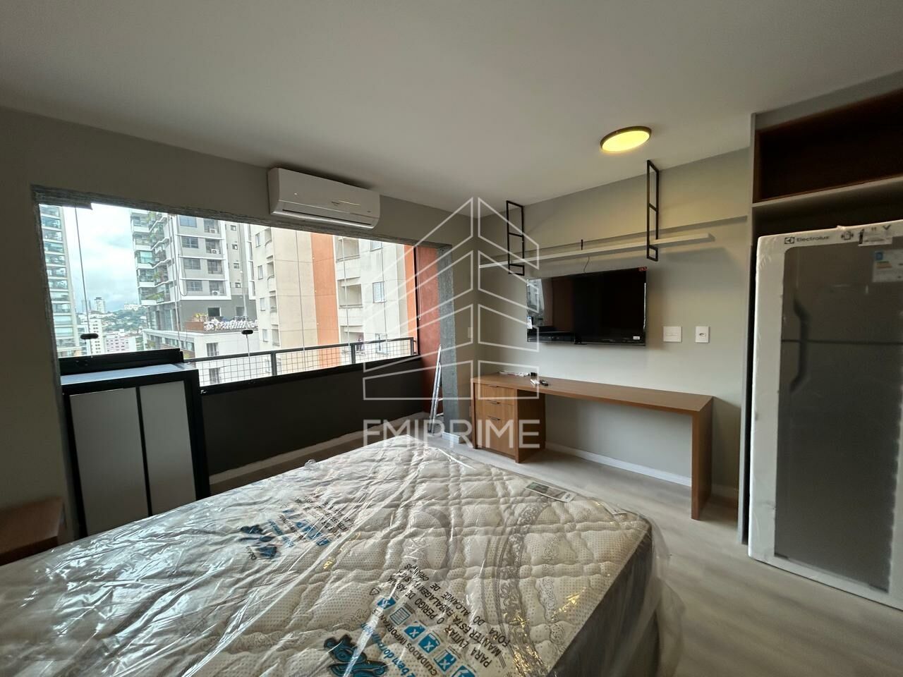 Com 27m², o Studio mobiliado e pronto para uso, equipado com ar-condicionado, cama, eletrodomésticos e armários planejados. Ideal para quem busca praticidade no dia a dia.