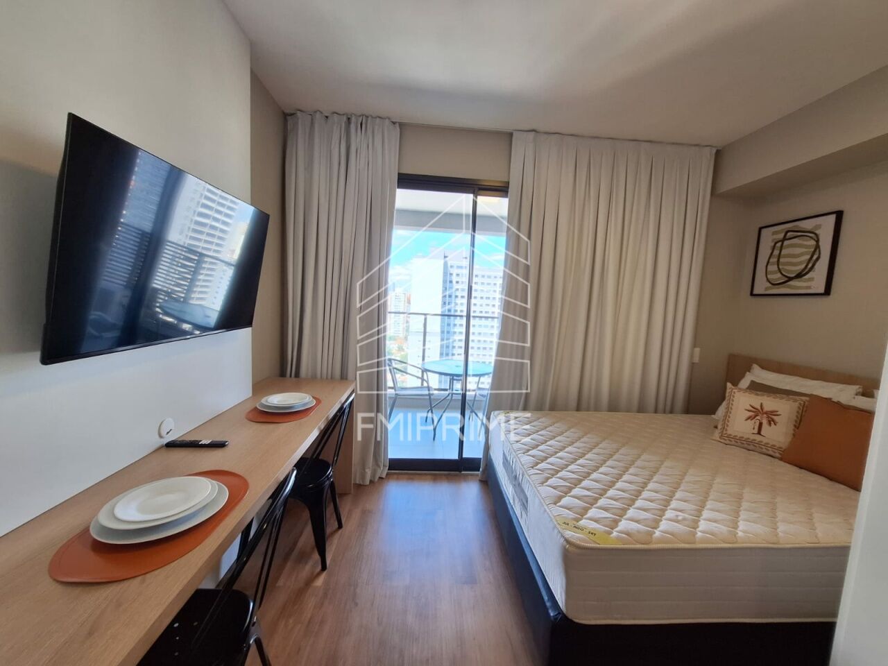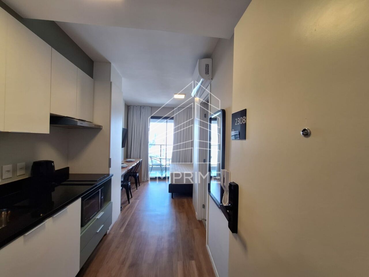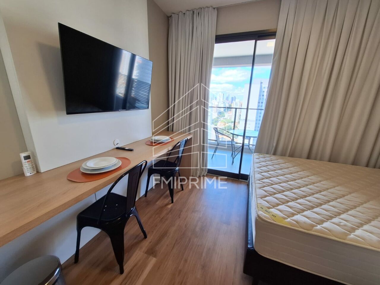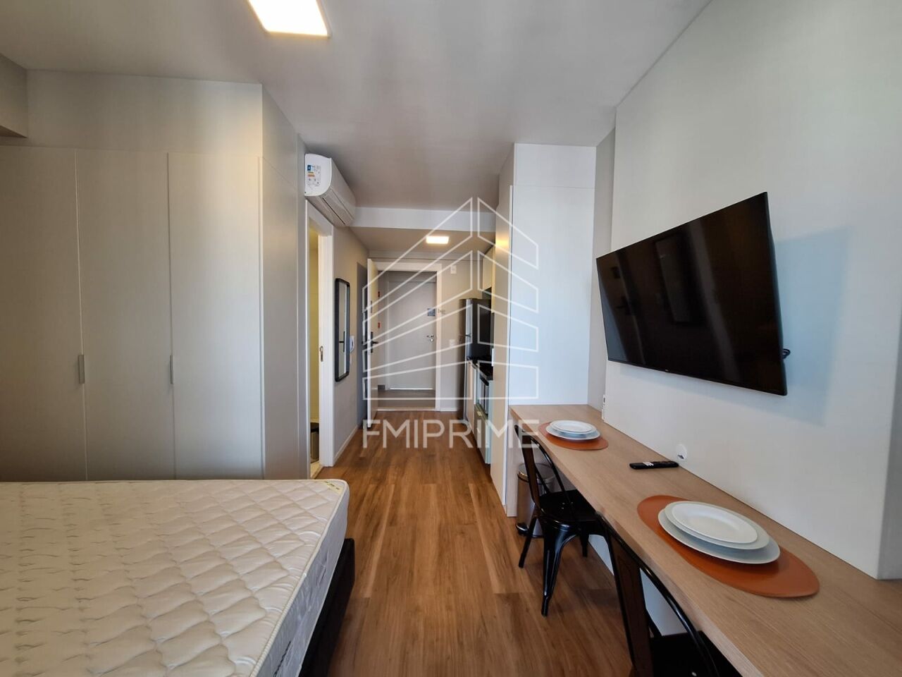 Nunca habitado, ar condicionado, cama , mesa , cooktop, geladeira, micro-ondas , Tv, secador de cabelo, louça.