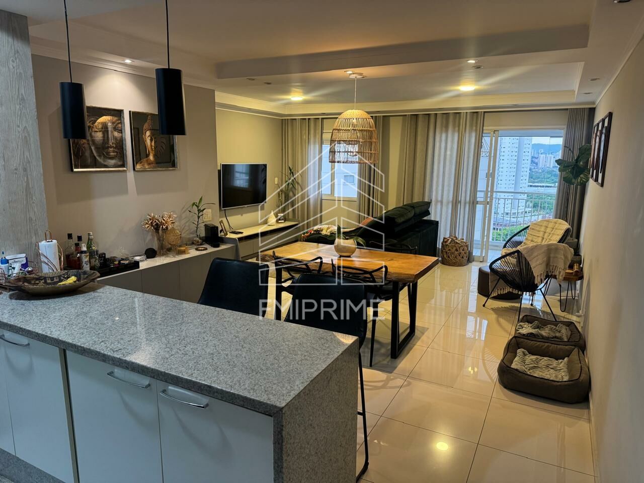 Apartamento 77m² planta original com 3 dormitórios, mas foi revertido para sala com ampla distribuição, piso porcelanato ,cozinha americana com armários, andar alto com varanda fechada com vidros, face norte e 2 vagas fixas de garagem.