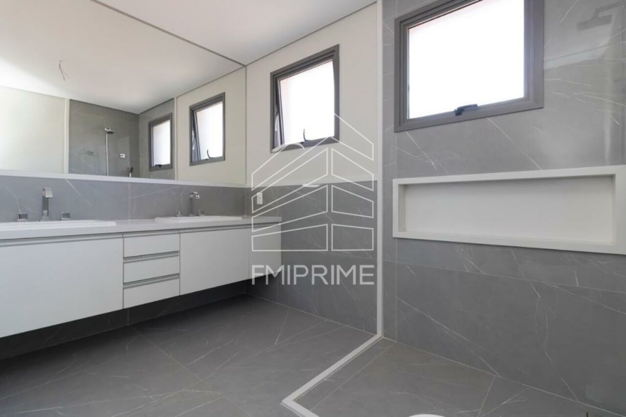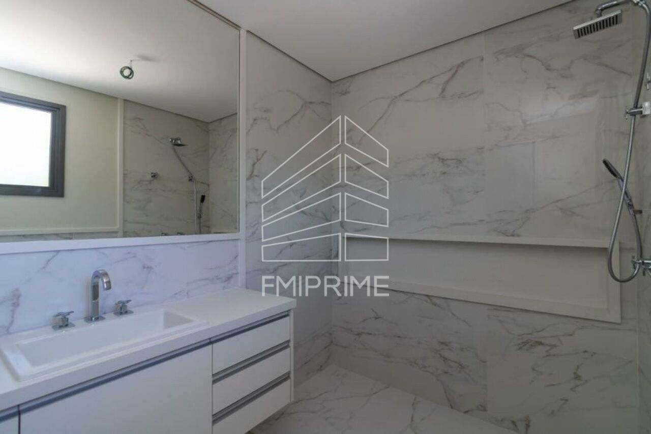 No pavimento superior, acessado por escada metálica de desenho contemporâneo, encontram-se quatro suítes com acesso a amplos terraços. Os banheiros apresentam acabamentos em porcelanato, espelhos, acessórios completos e marcenaria Artigiano. O projeto permite a criação de uma suíte master com dois closets e banheiros independentes, proporcionando uma configuração ainda mais exclusiva. Uma sala íntima complementa o andar e pode ser utilizada como home office ou home theater.