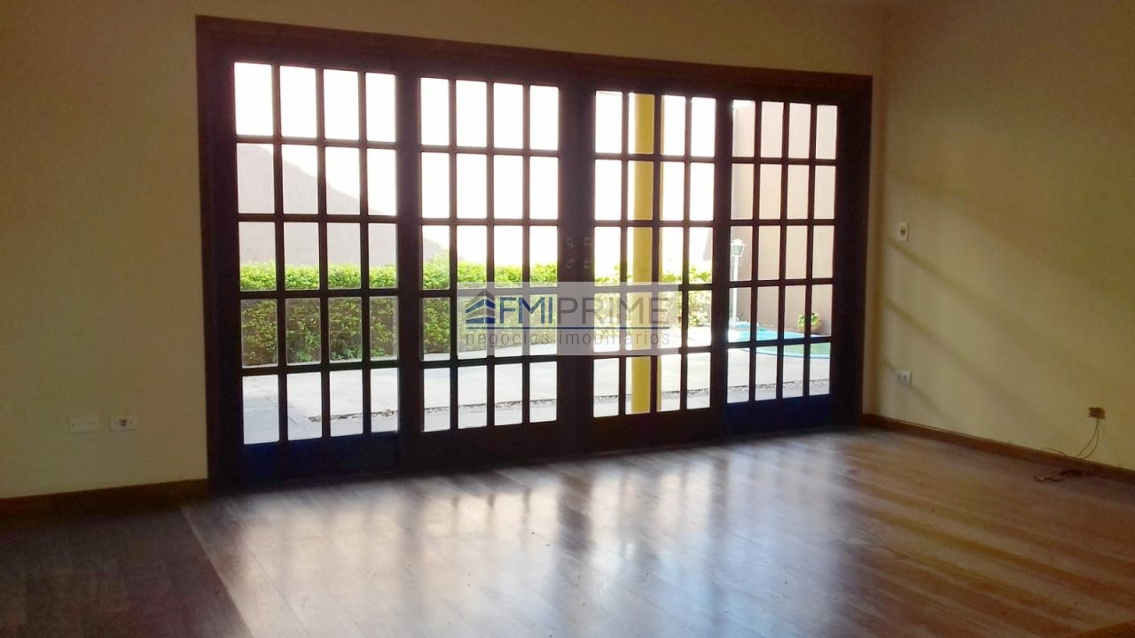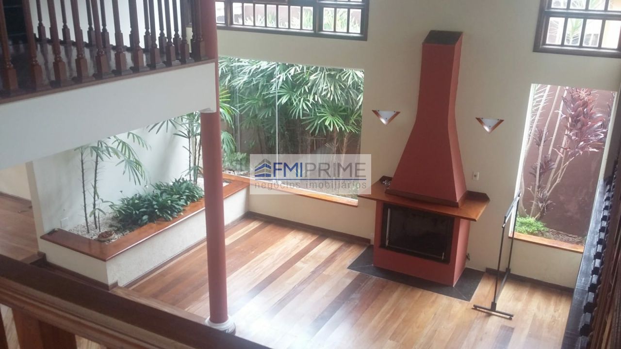 Casa moderna e espaçosa localizada em rua tranquila e arborizada; tem varandas nos dois quartos da frente com banheiro e hidromassagem; tem uma suíte master com closet e hidro dupla e outra suíte baby; na entrada das seis vagas de garagem tem piso misto de grama e cimento ladeado por coqueiros e arbustos; fachada protegida por árvore frondosa; piso laminado; porta balcão em clima de refinada casa de campo; tem três salas sendo a principal com lareira, jardim de inverno e pé direito duplo; piscina e churrasqueira no terreno; na saída dos quartos tem um balaustre de madeira com vista para a ampla sala; tem armários planejados na ampla cozinha e na lavanderia; dotada de lavabo e quarto de empregada suíte; condomínio completo incluindo quadras esportivas e segurança 24 hrs incluindo ambulância.
