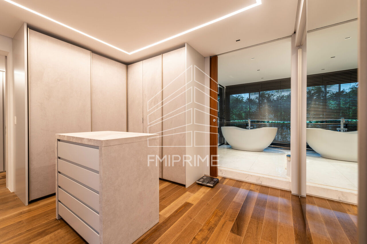 A residência conta ainda com oito vagas de garagem cobertas, ar-condicionado em todos os ambientes e acabamentos de altíssimo padrão, com marcenaria planejada de primeira linha que valoriza cada espaço com sofisticação e funcionalidade.
