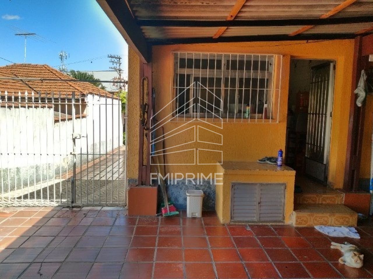 Quintal intermediário coberto com churrasqueira.