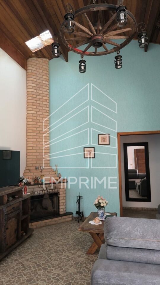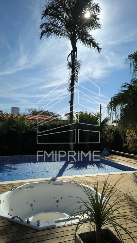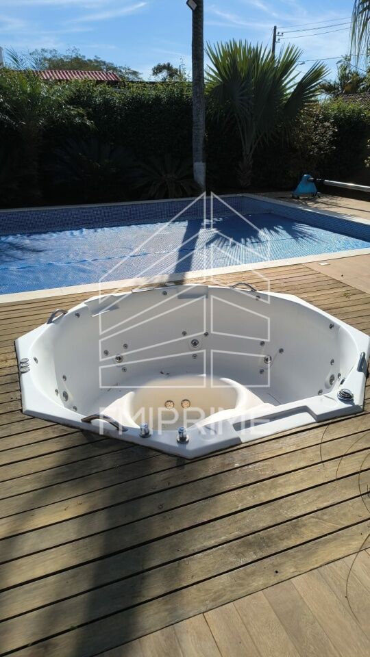Chácara linda em Ibiuna à venda; em condomínio fechado (Valor mensal: R$ 575); com lavabo além de 4 suítes; com piscina aquecida com aquecimento solar, sem bora de alvenaria, construída há três anos, sauna e dois ofurôs; linda varanda com churrasqueira e pia; sala ampla com lareira; muitos jardins ao redor ca casa.