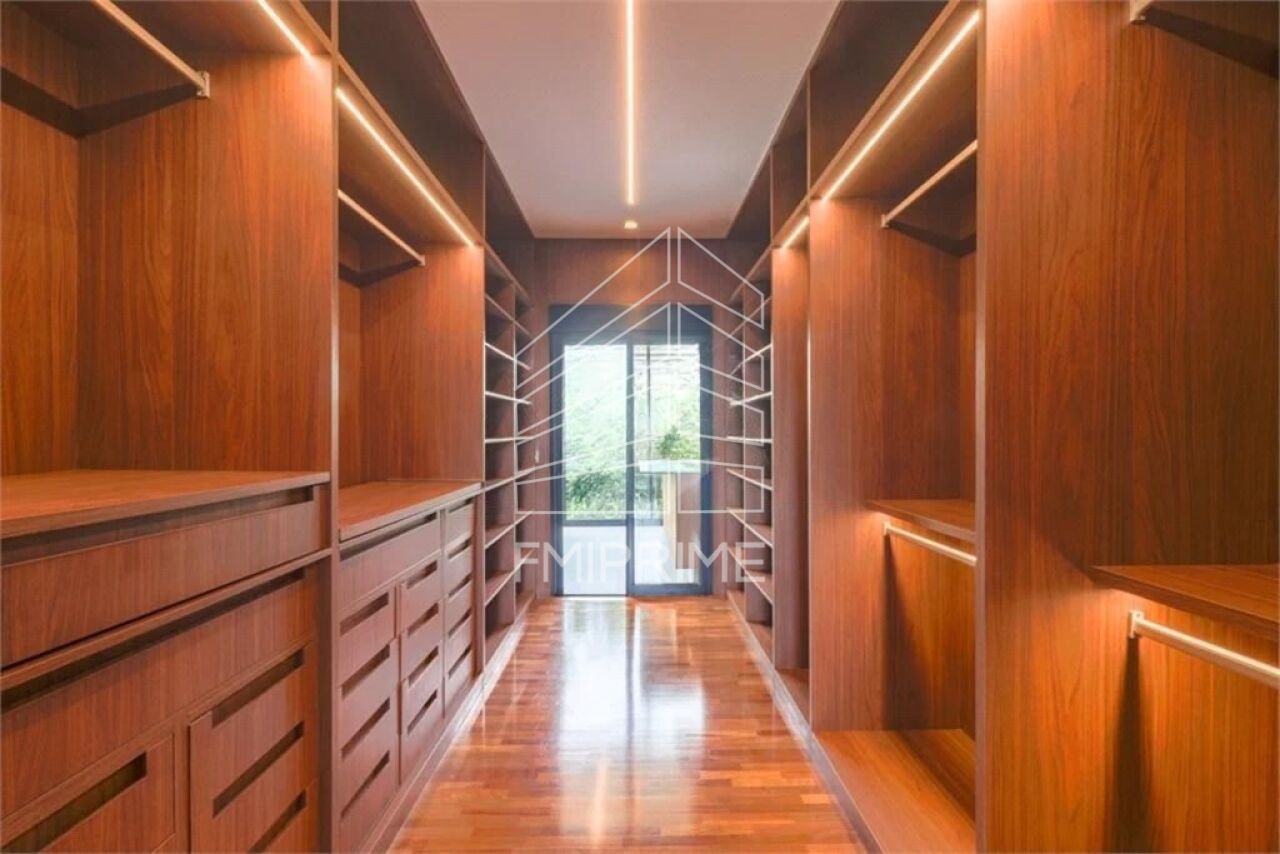 O piso superior revela um espaço concebido para viver e receber com personalidade. Um segundo living, escritório cuidadosamente planejado e uma área externa exuberante compõem o ambiente, onde o paisagismo se integra a uma piscina climatizada com borda infinita, ducha, terraço gourmet e lavabo de apoio. A suíte master, posicionada de forma privilegiada, é um verdadeiro refúgio, com amplo closet, sala de banho com banheira, vaso sanitário inteligente e uma cozinha de apoio exclusiva, um diferencial que reforça o conceito de independência e conforto absoluto.