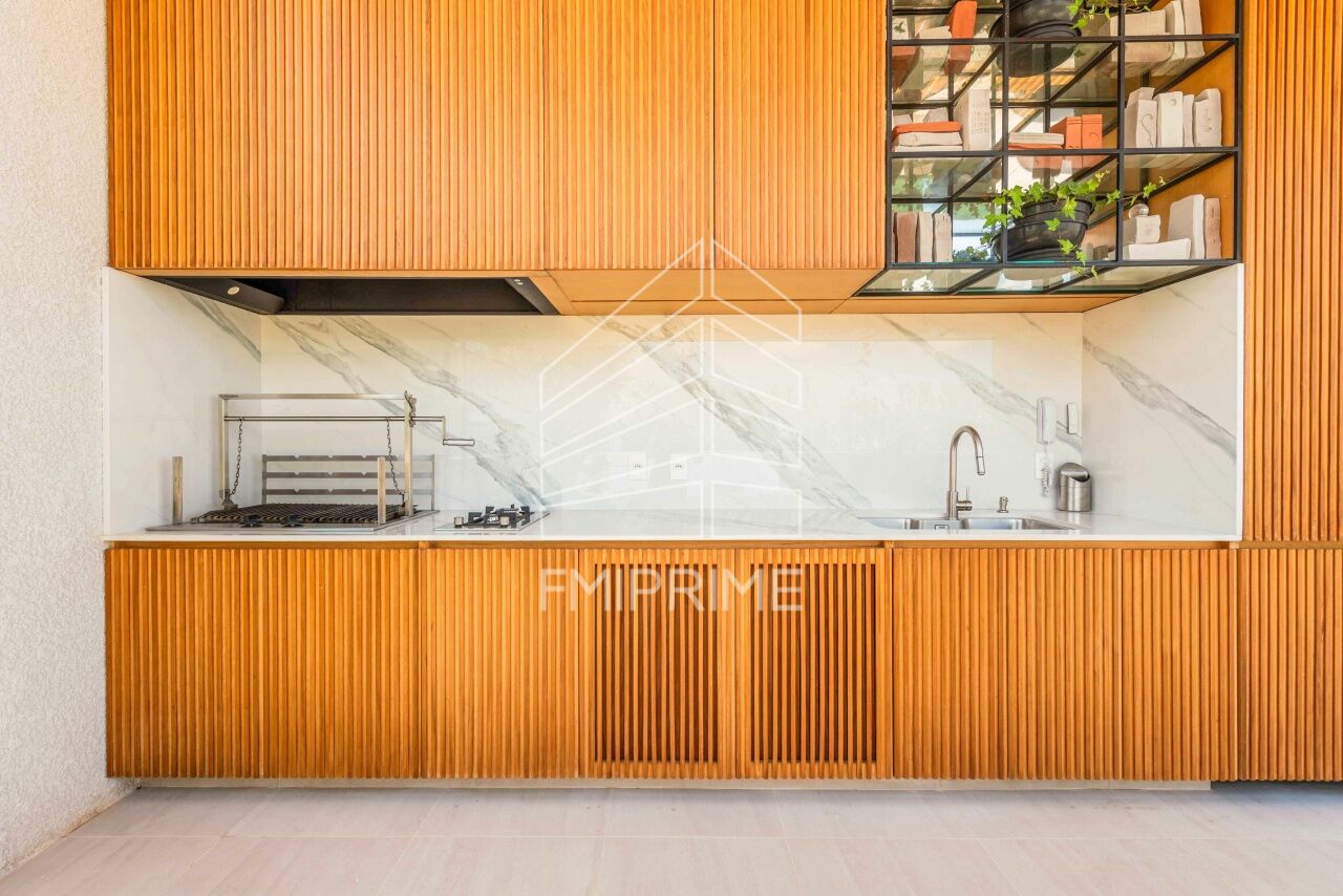 O living amplo, integrado de forma fluida à varanda, é banhado por luz natural abundante, criando uma atmosfera elegante e acolhedora, ideal tanto para momentos de convivência quanto para receber com requinte. A cozinha, equipada com eletrodomésticos de alto padrão e acabamentos sofisticados, revela um espaço pensado para quem valoriza a arte de receber e a experiência gastronômica.