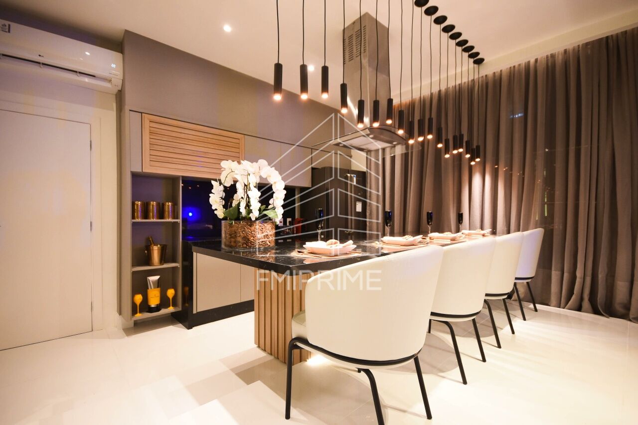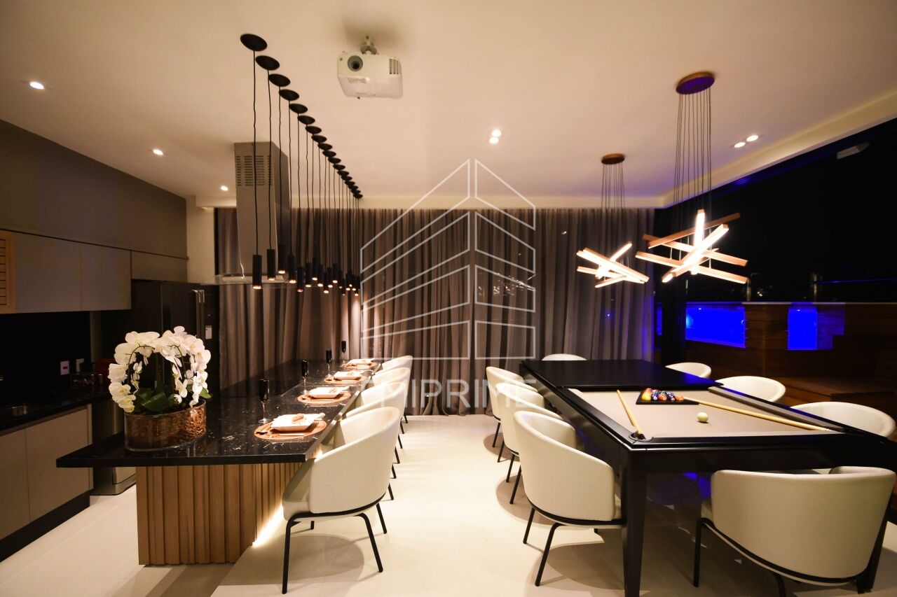 Com 180 m² e acessos independentes nos dois pavimentos, o imóvel oferece maior autonomia e funcionalidade. No nível inferior, encontram-se a suíte máster, dois dormitórios, sala íntima e lavabo, garantindo privacidade à área íntima. No pavimento superior, a cozinha americana integra-se ao living e à sala de jantar com mesa para oito lugares, criando um espaço fluido para receber. A varanda generosa, equipada com jacuzzi e churrasqueira elétrica, amplia a área social e valoriza a vista da cidade.