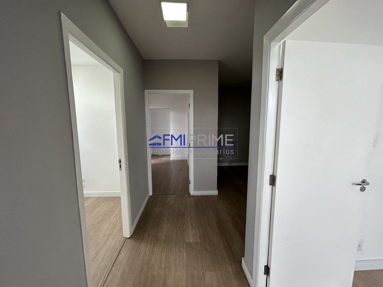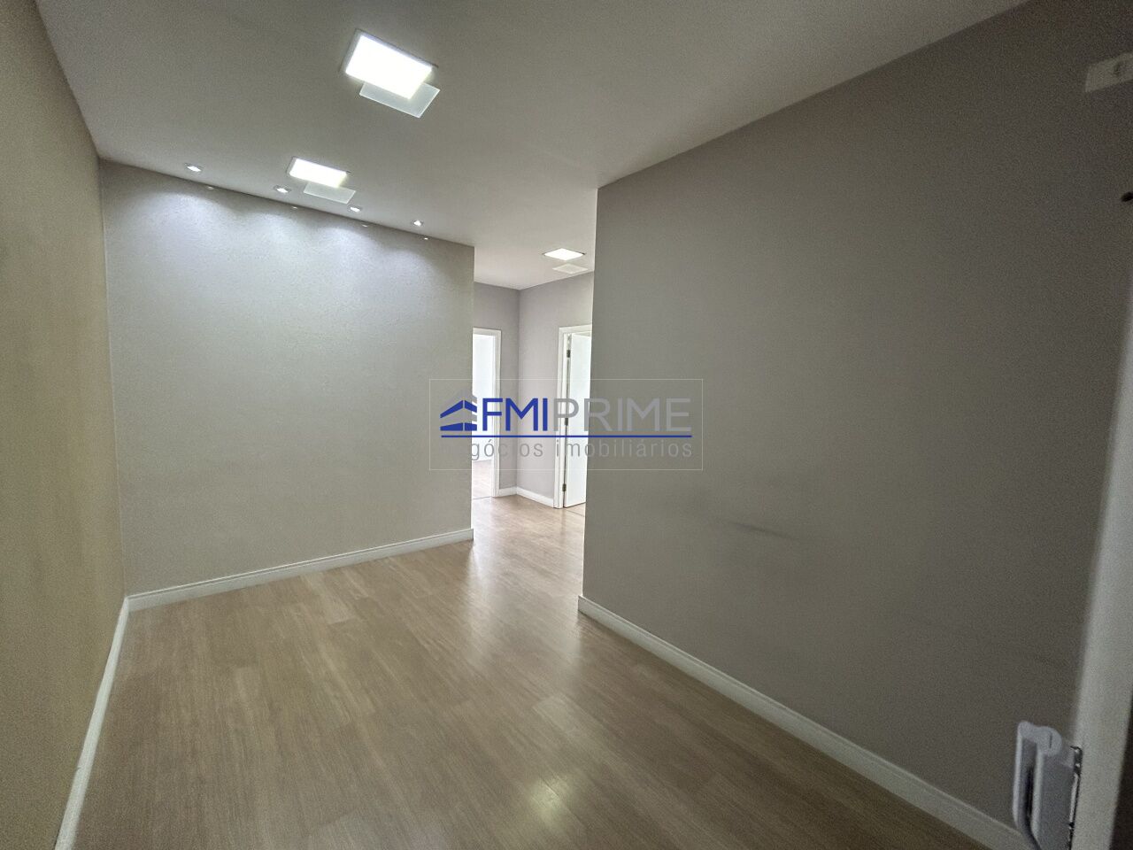 Sala comercial com 61m² com 4 salas, 1 espaço para recepção, 1 banheiro e 2 vagas de garagem.