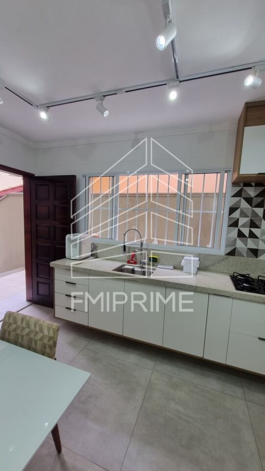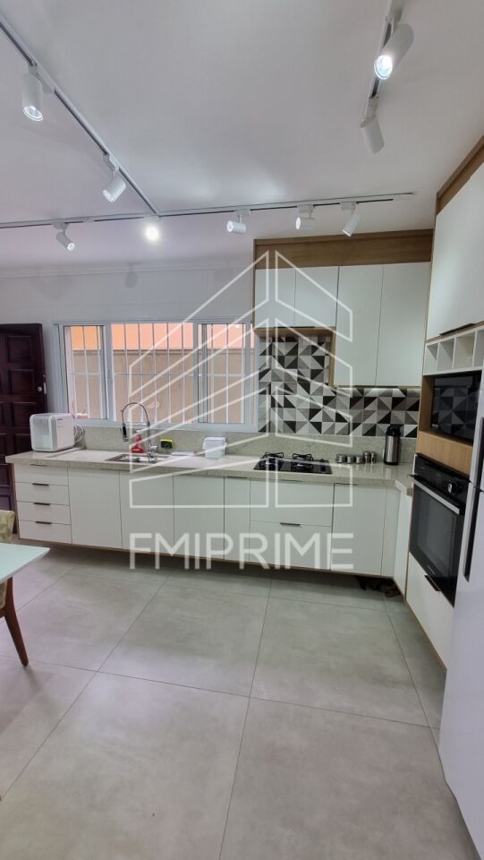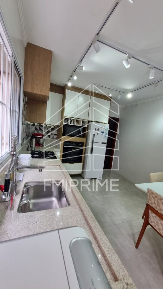 Conta com 2 vagas de garagem, uma sala ampla e bem iluminada, cozinha espaçosa com armários planejados e espaço para uma mesa de 8 lugares. Possui 3 dormitórios, sendo 1 suíte com closet, 1 banheiro social e 1 lavabo. A área de serviço é integrada à cozinha e há um quarto de serviço com banheiro. Nos fundos, você encontrará uma área gourmet com pia e um quintal amplo de 4m x 13m.