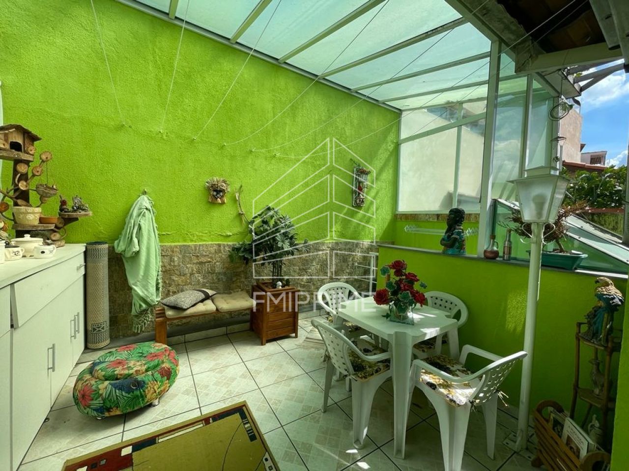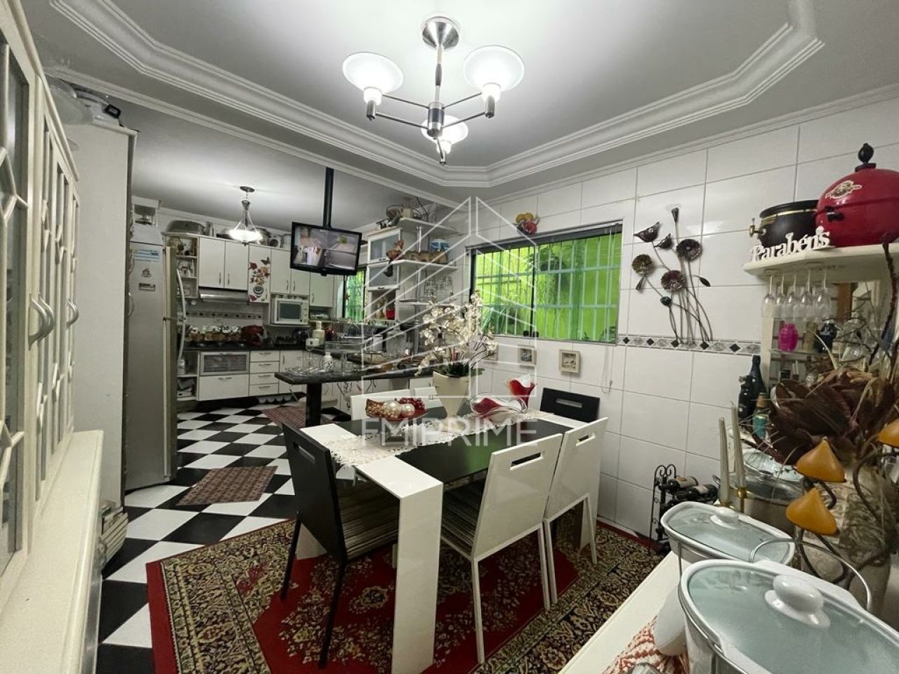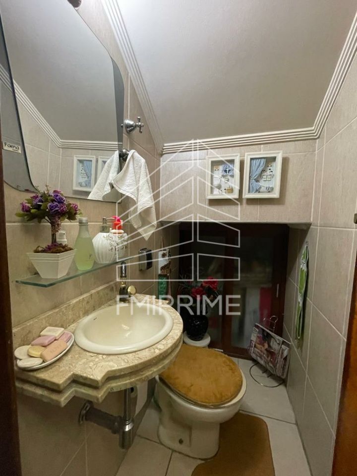 Com 3 dormitórios, sendo 1 suíte, sala ampla com dois ambientes, copa e cozinha com armários planejados, área de serviço, 2 banheiros, lavabo, quintal fechado com teto de vidro, sacada na frente, varanda, corredor lateral, churrasqueira com cozinha, 4 vagas de garagem coberta e mais um quarto com banheiro.
