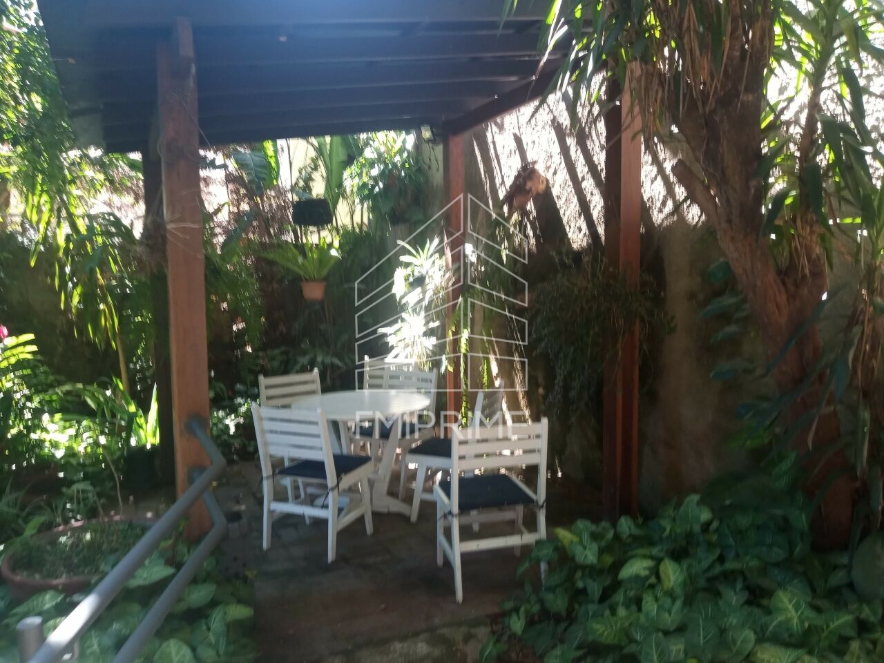 Sobrado de 280 m2 charmoso e super confortável, com grande sala que comunica com uma varanda ampla, com jardim, grande quintal arborizado com fonte de água e área pergolato coberto para descanso e leitura, jardim de inverno, canil e edícula em sala grande estilo misto rústico-moderno, com biblioteca térrea e mezanino. Possue 4 quartos sendo uma suíte e varanda em um deles; tem sala para homework com saída para o jardim, copa, cozinha e lavanderia grande; garagem para 4 carros; tem ainda na escada interna do sobrado um trilho e cadeira para movimentação de doentes ou idosos entre os pisos.